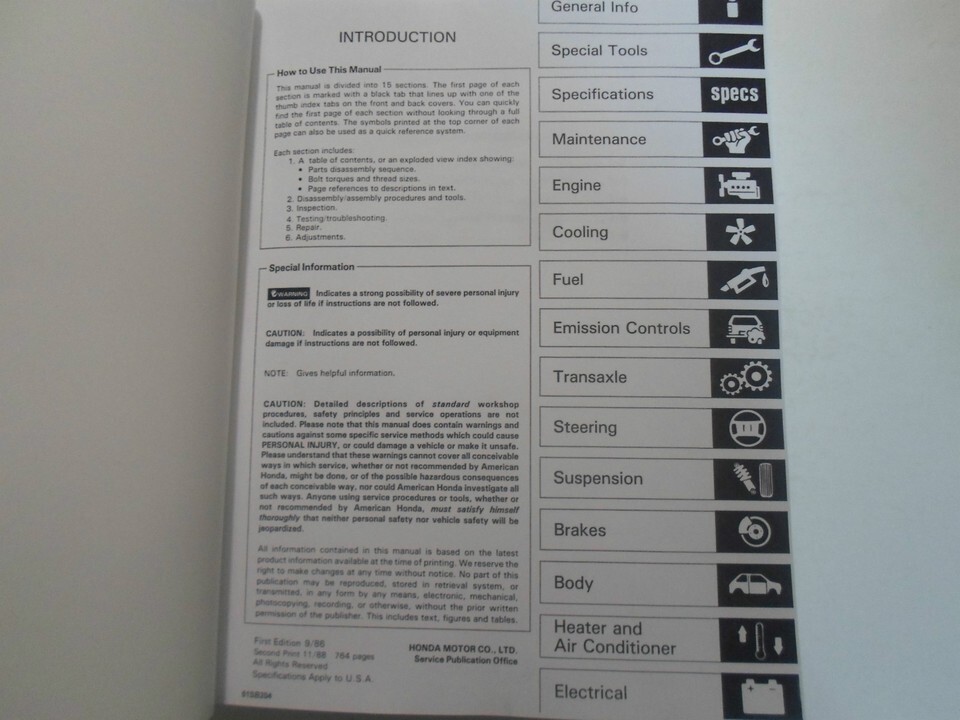 Pieno di informazioni e illustrazioni, istruzioni passo passo, montaggio/smontaggio, illustrazioni esplose/diagrammi/risoluzione dei problemi, ottimo manuale da avere quando si possiede un CIVIC CRX e manterra la tua HONDA in viaggio. Questo manuale ti fara risparmiare denaro in riparazioni/assistenza.