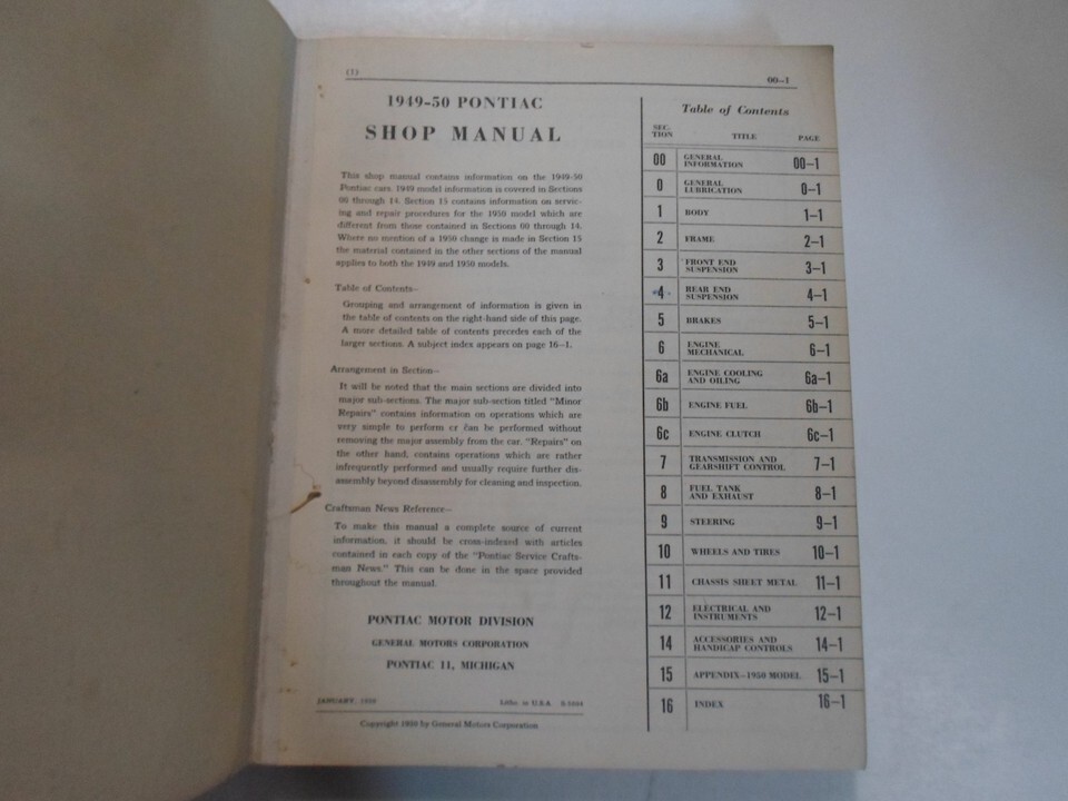 NUOVA RISTAMPA AUTORIZZATA DALLA FABBRICA 1949 1950 PONTIAC TUTTI I MODELLI SERVICE OFFICINA MANUALE DI RIPARAZIONE