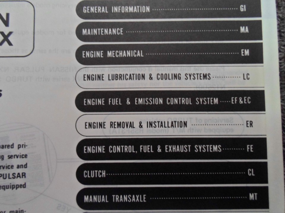 1984 Nissan Pulsar NX Atelier Service Reparation Atelier Manuel Usine OEM