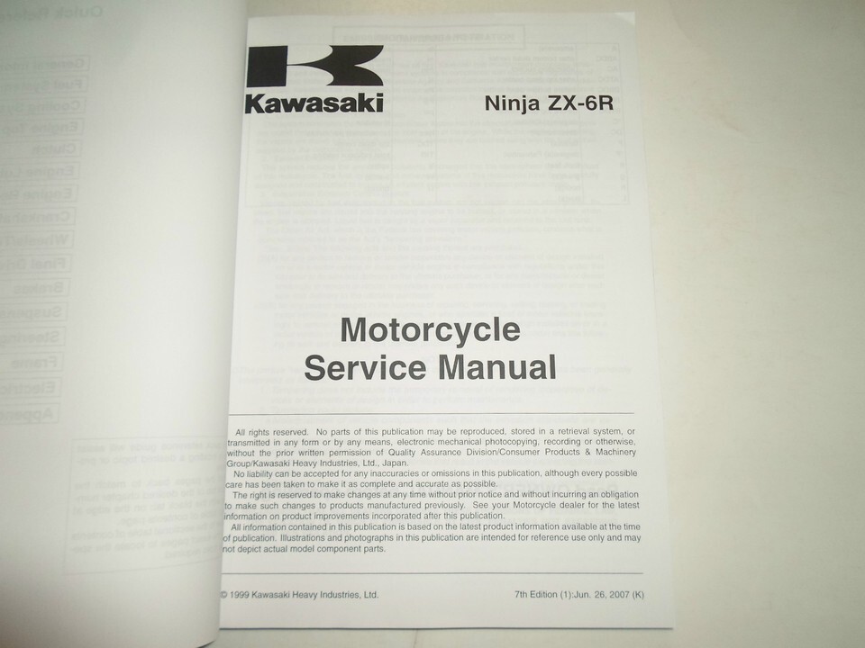 NOUVEAU MANUEL D'ATELIER DE REPARATION DE SERVICE DE MOTO KAWASAKI NINJA ZX-6R 2000-2001-2002