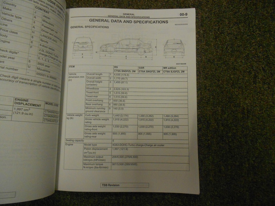 2005 Mitsubishi Lancer Évolution Technique Info Corps Réparation Manuel de OEM X