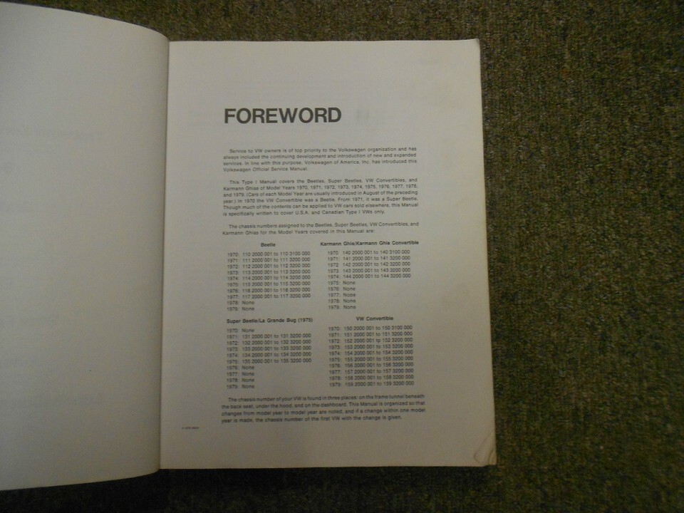 1970 1979 VW Super Beetle Karmann Ghia Ufficiale Servizio Manuale Nuovo 79 X