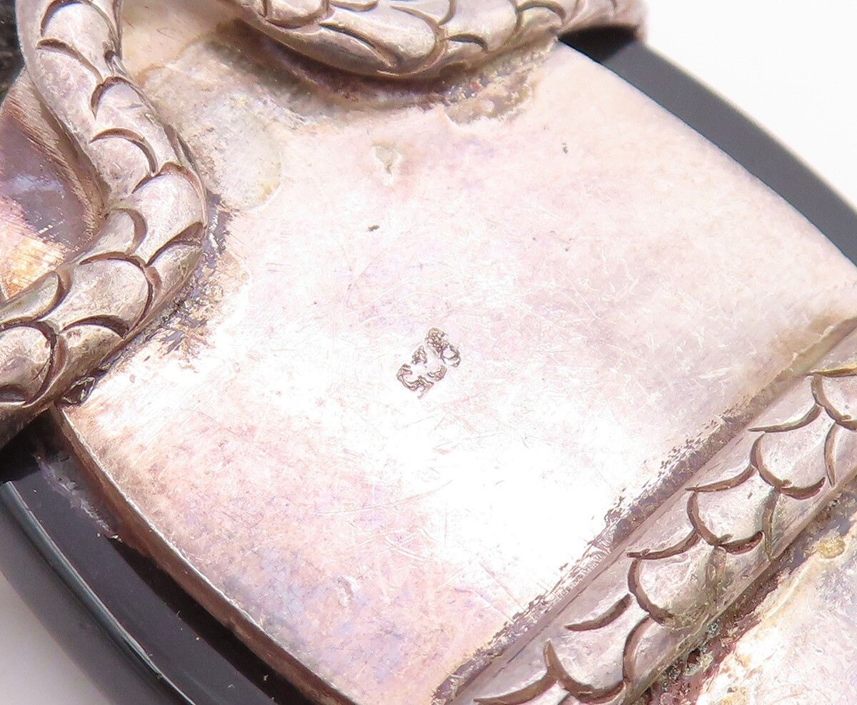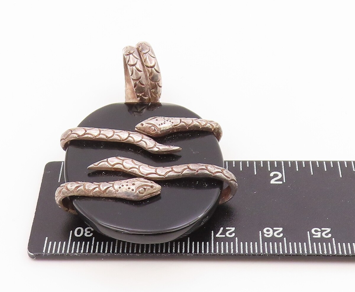 925 Sterling Silver Vintage Pendant Black Onyx Classic Entwined Snake PT26095