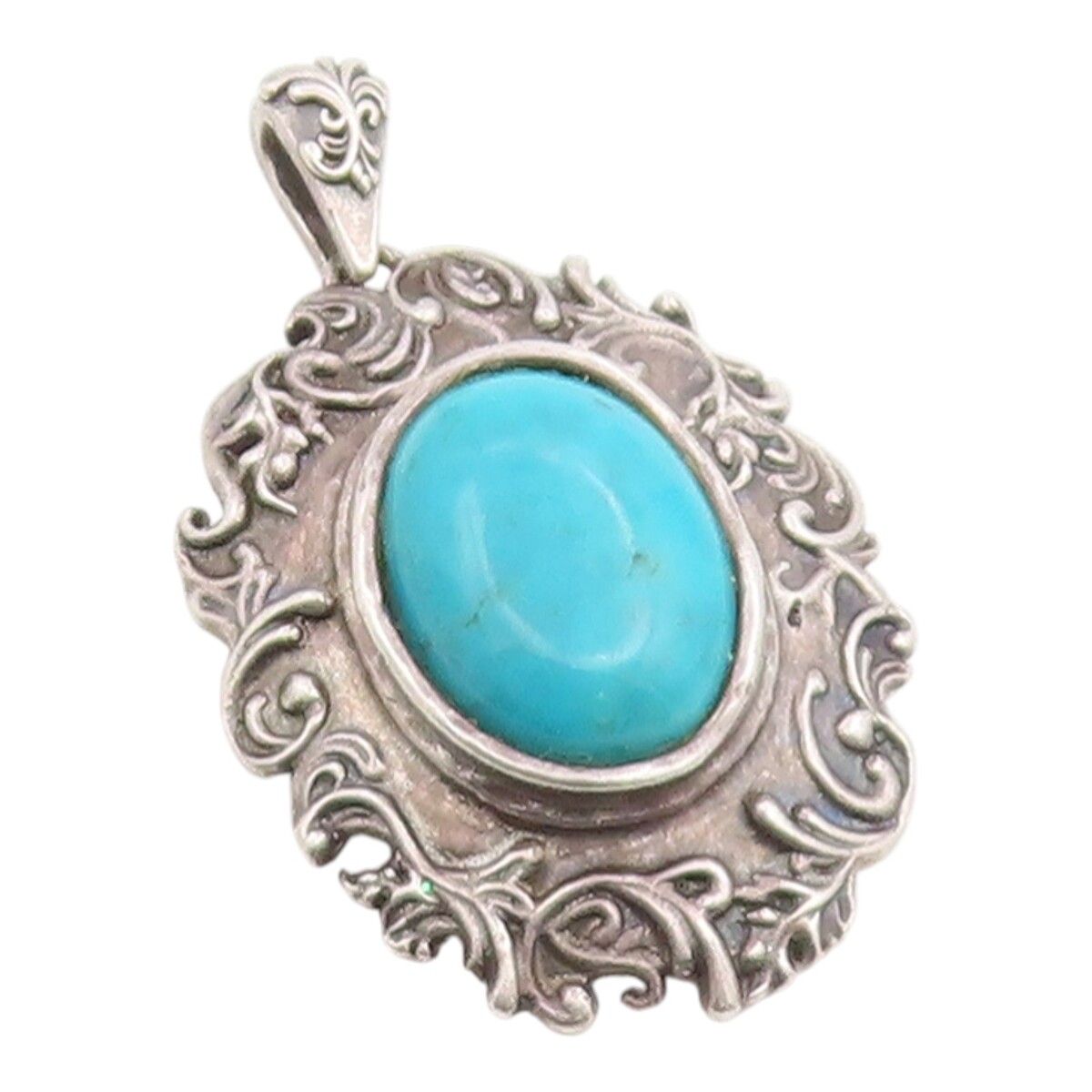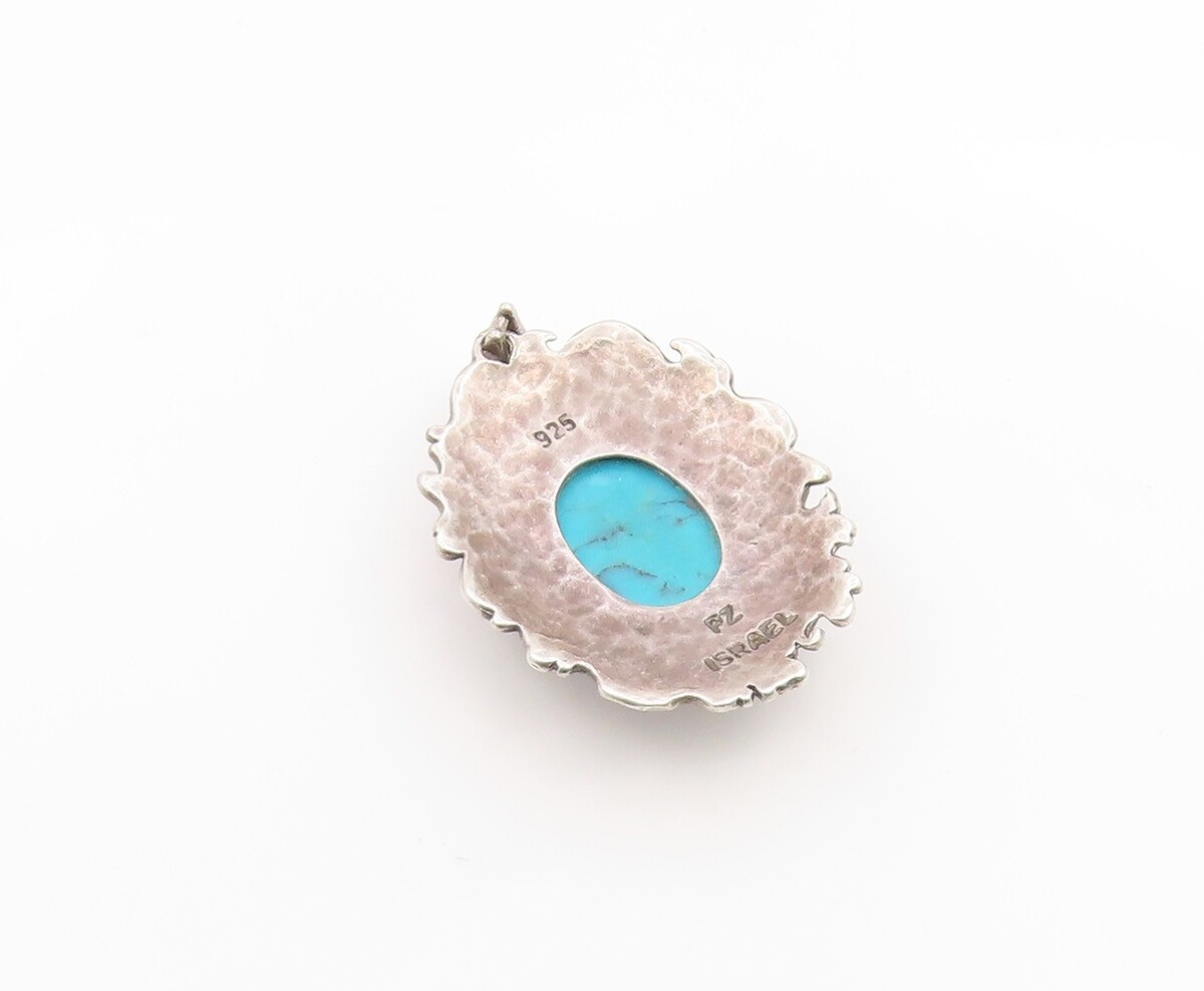 925 Sterling Silver Vintage Pendant ISRAEL Cabochon Turquoise Charm PT26081