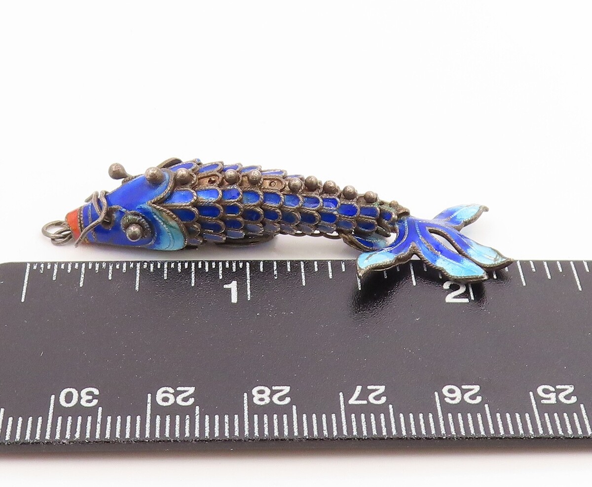 925 Sterling Silver Vintage Pendant Enamel Articulated Koi Fish Charm PT26067