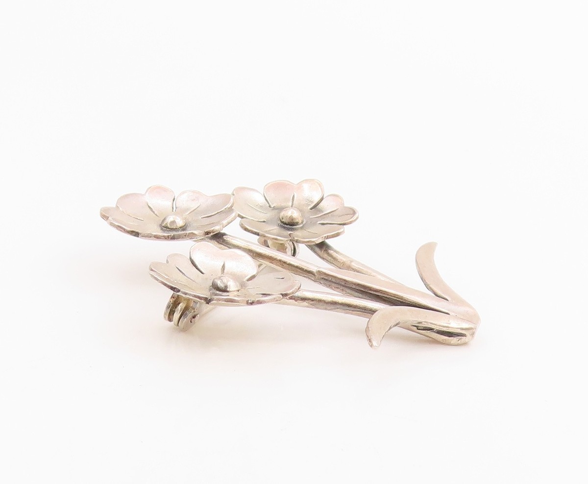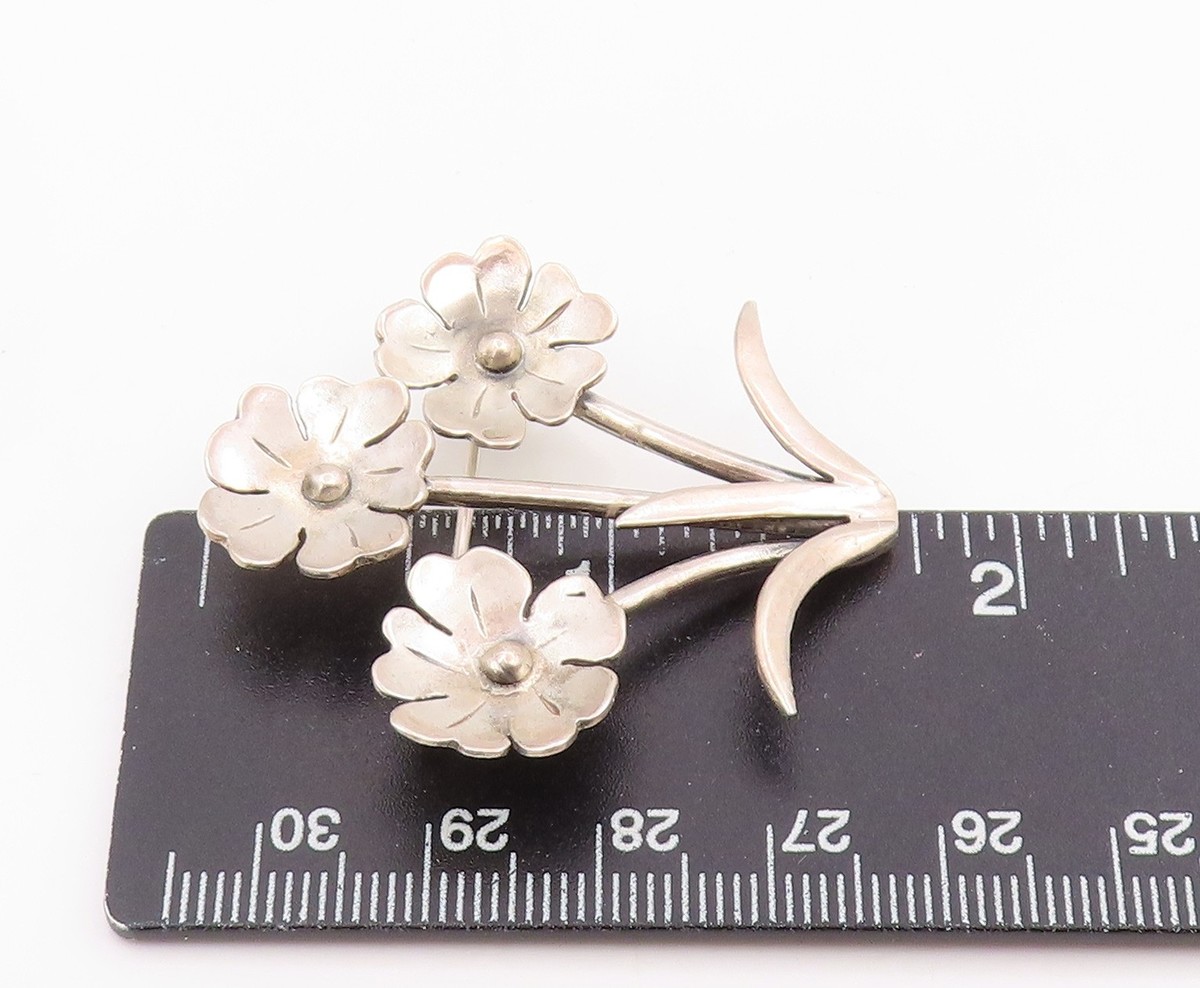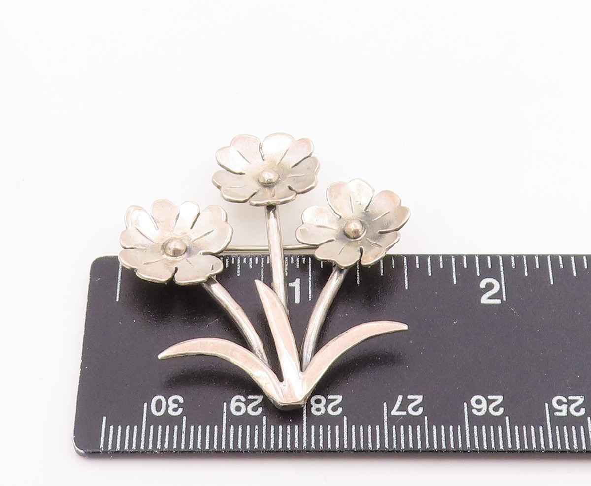 925 Sterling Silver Vintage Brooch Pin Modernist Triple Floral Bunch BP12500