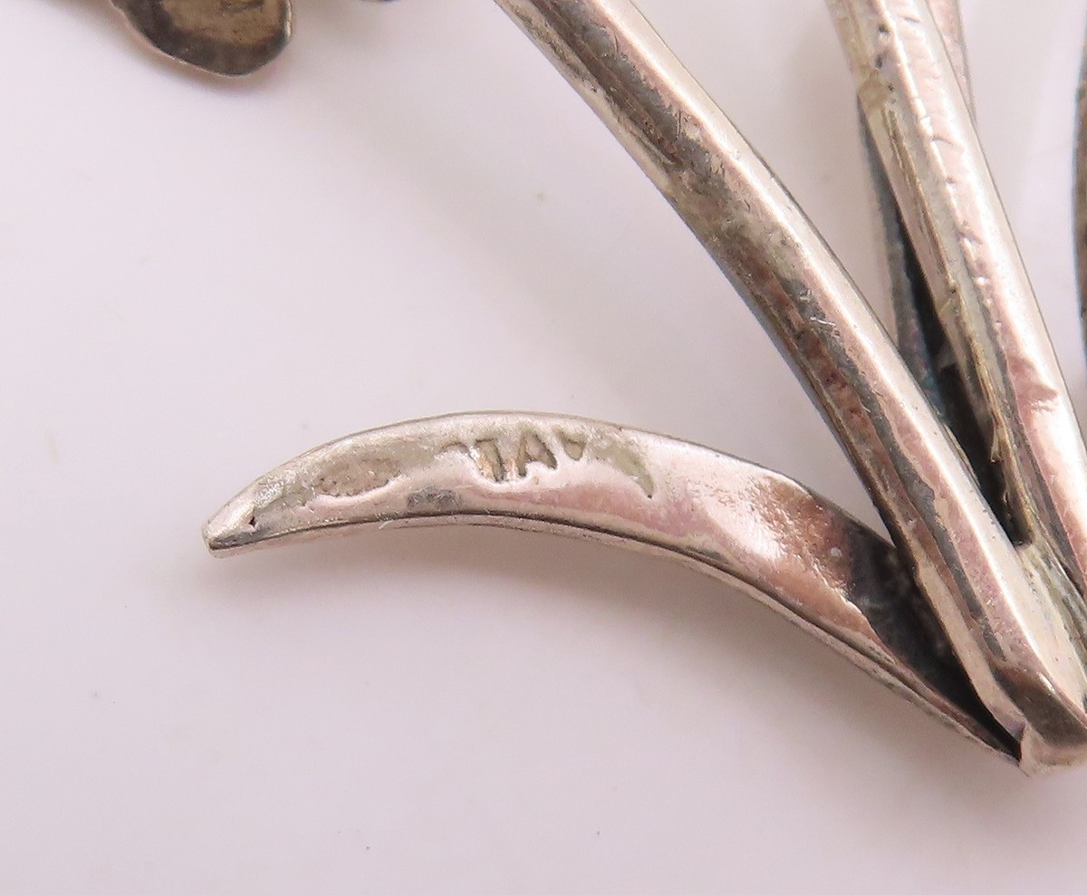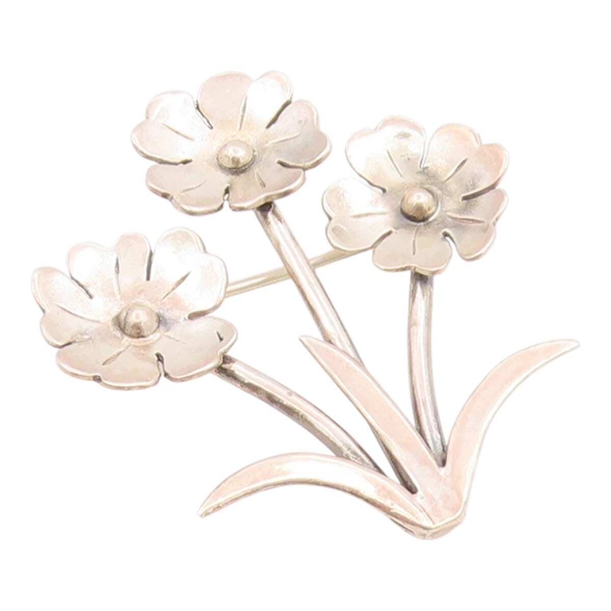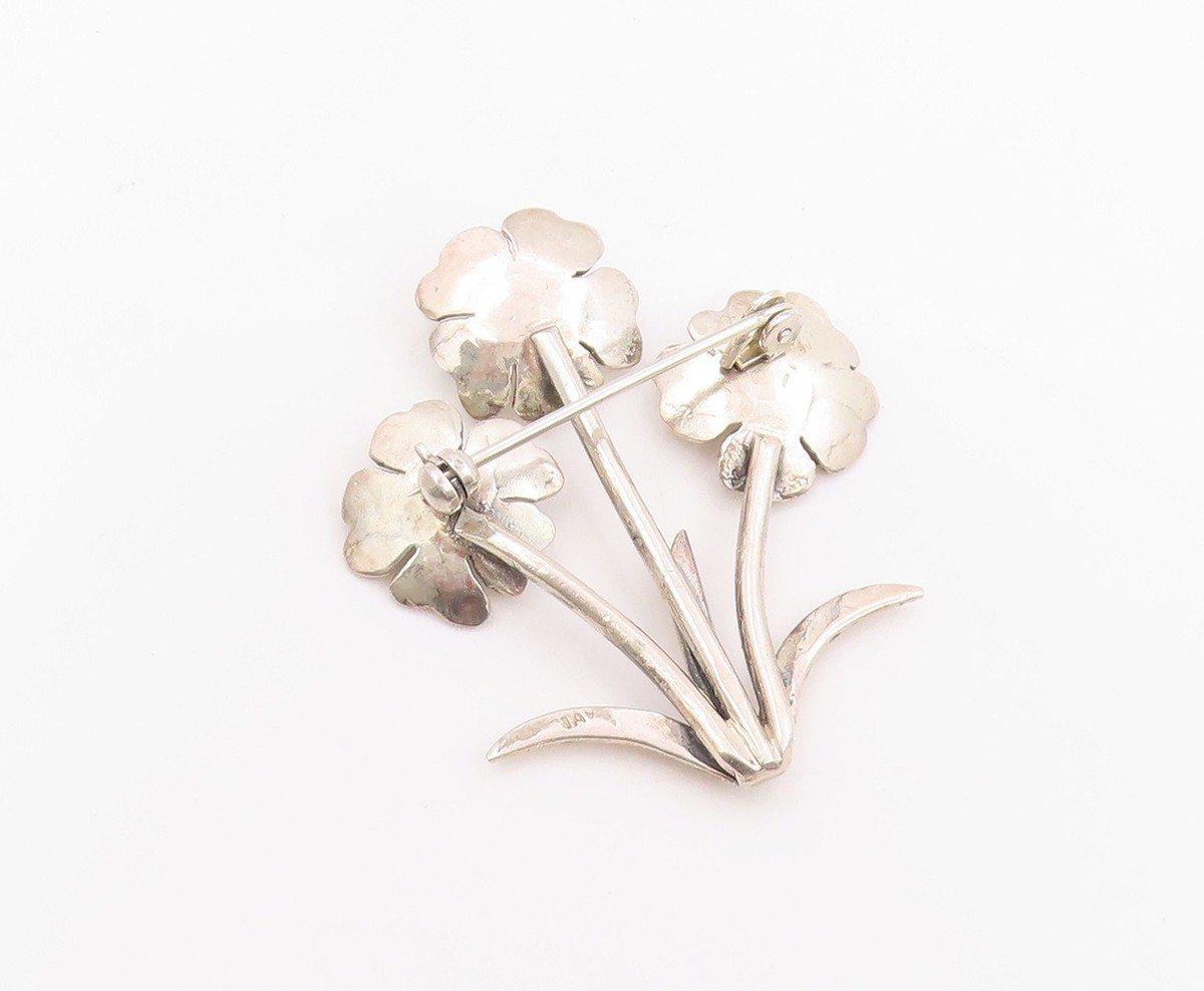 925 Sterling Silver Vintage Brooch Pin Modernist Triple Floral Bunch BP12500