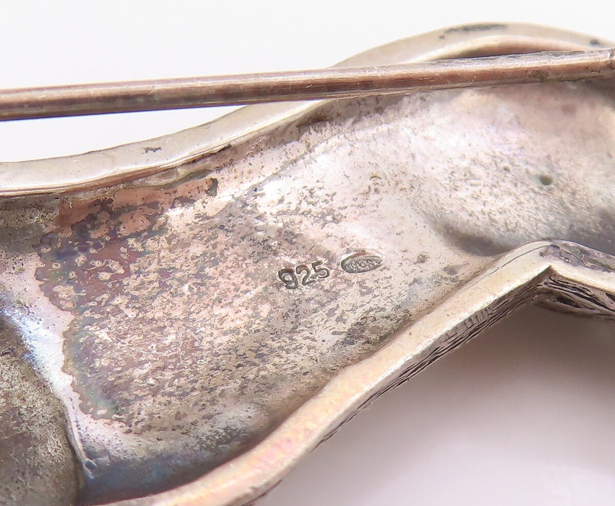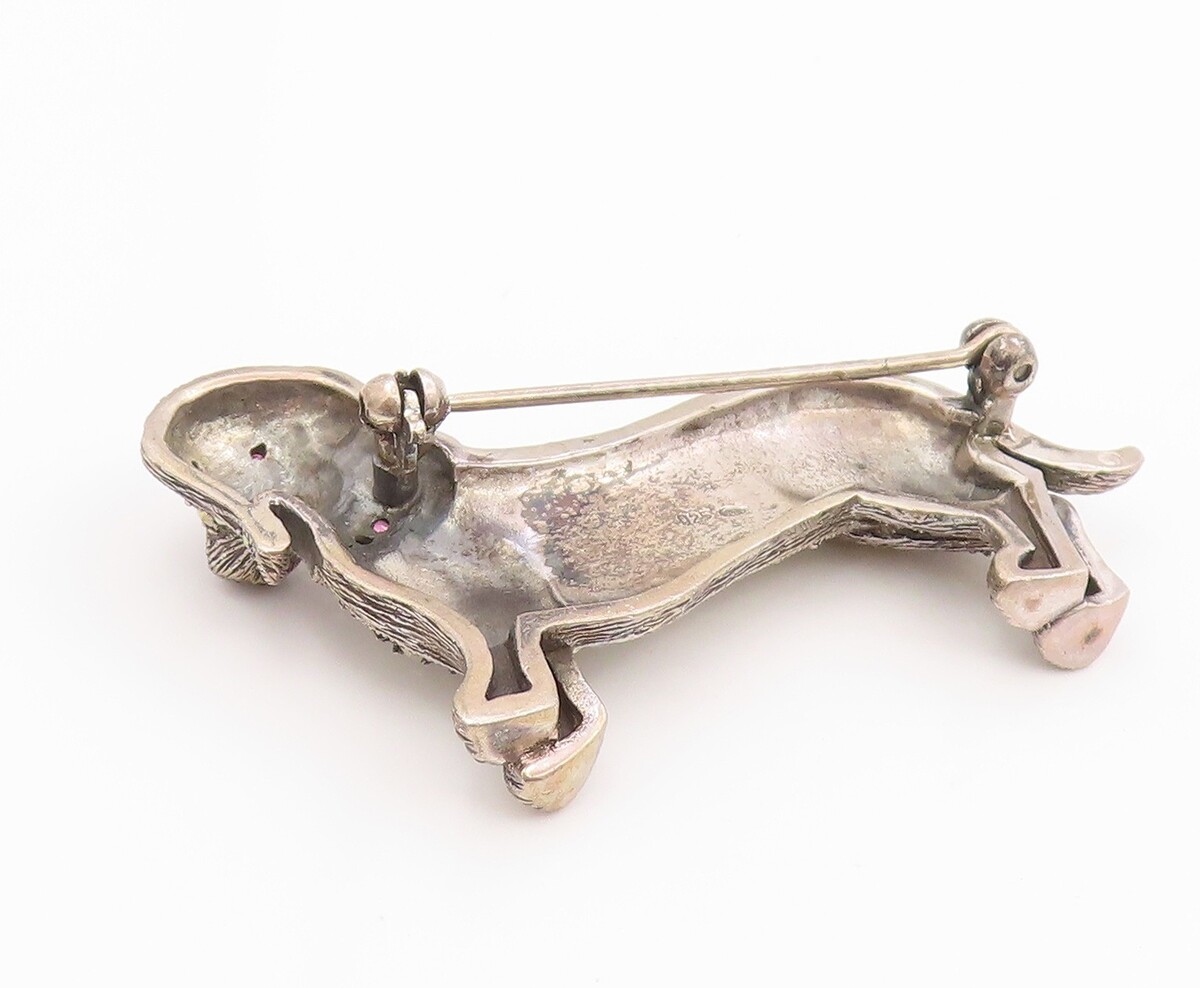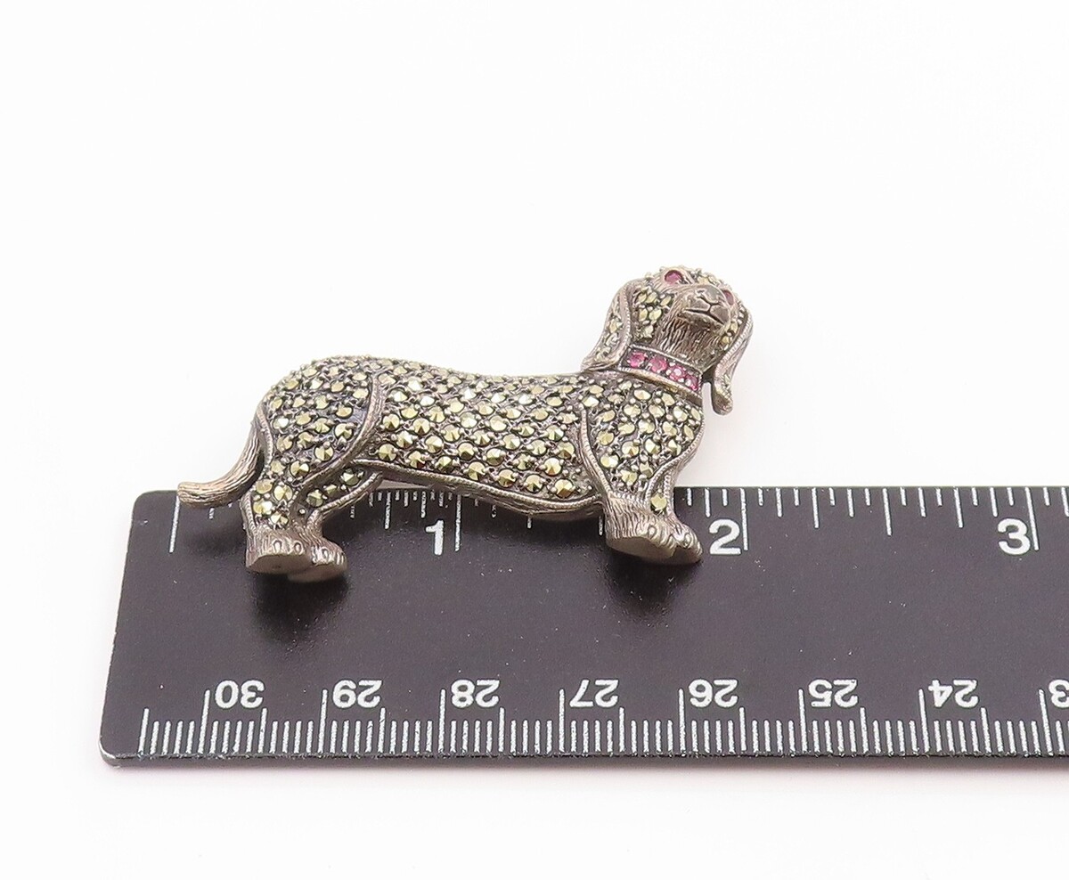 925 Sterling Silver Vintage Brooch Pin Ruby & Marcasite Dachshund Dog BP12518
