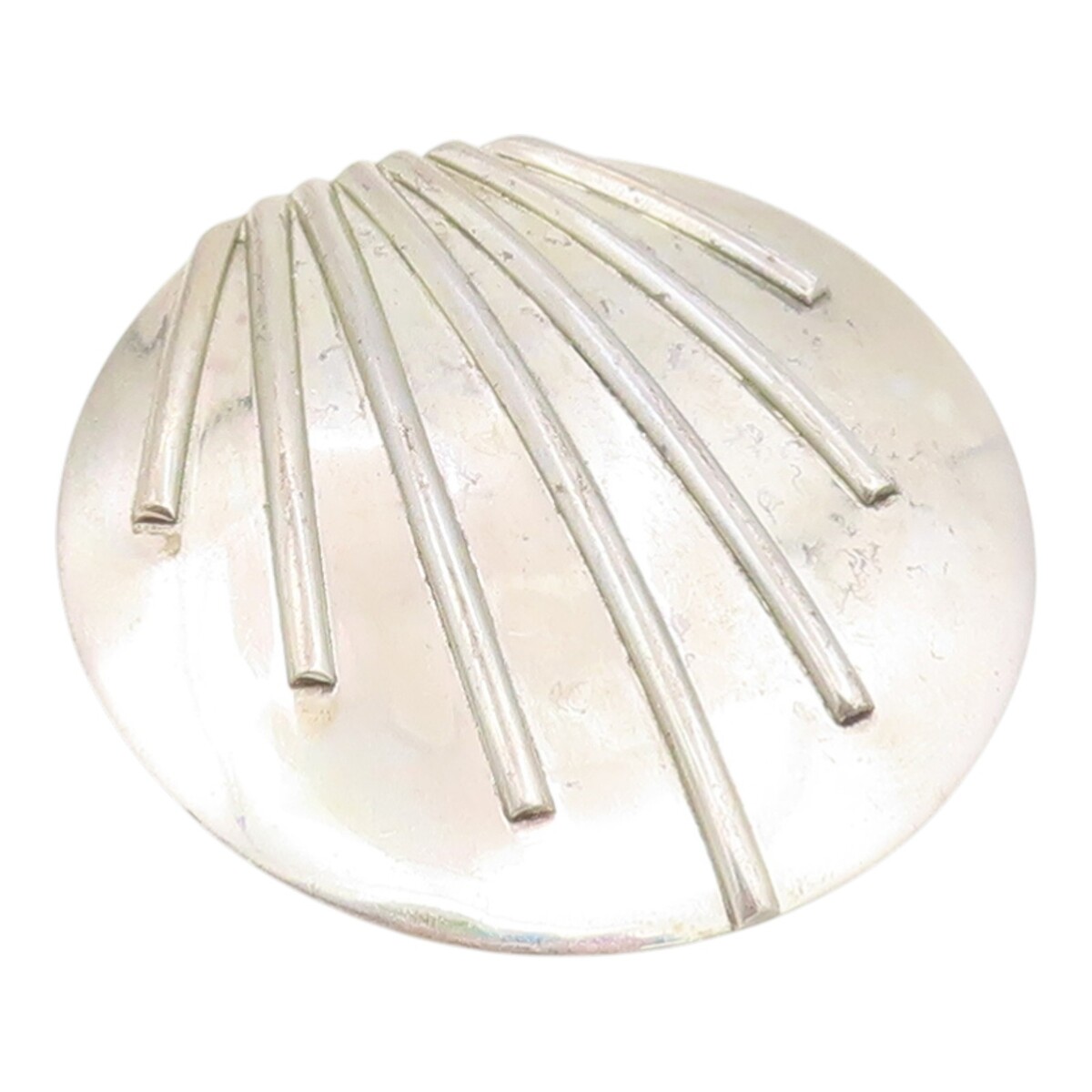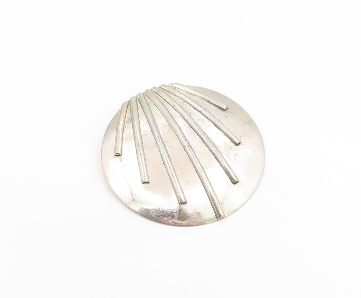 925 Sterling Silver Vintage Brooch Pin Modernist Ribbed Shell Concho BP12506