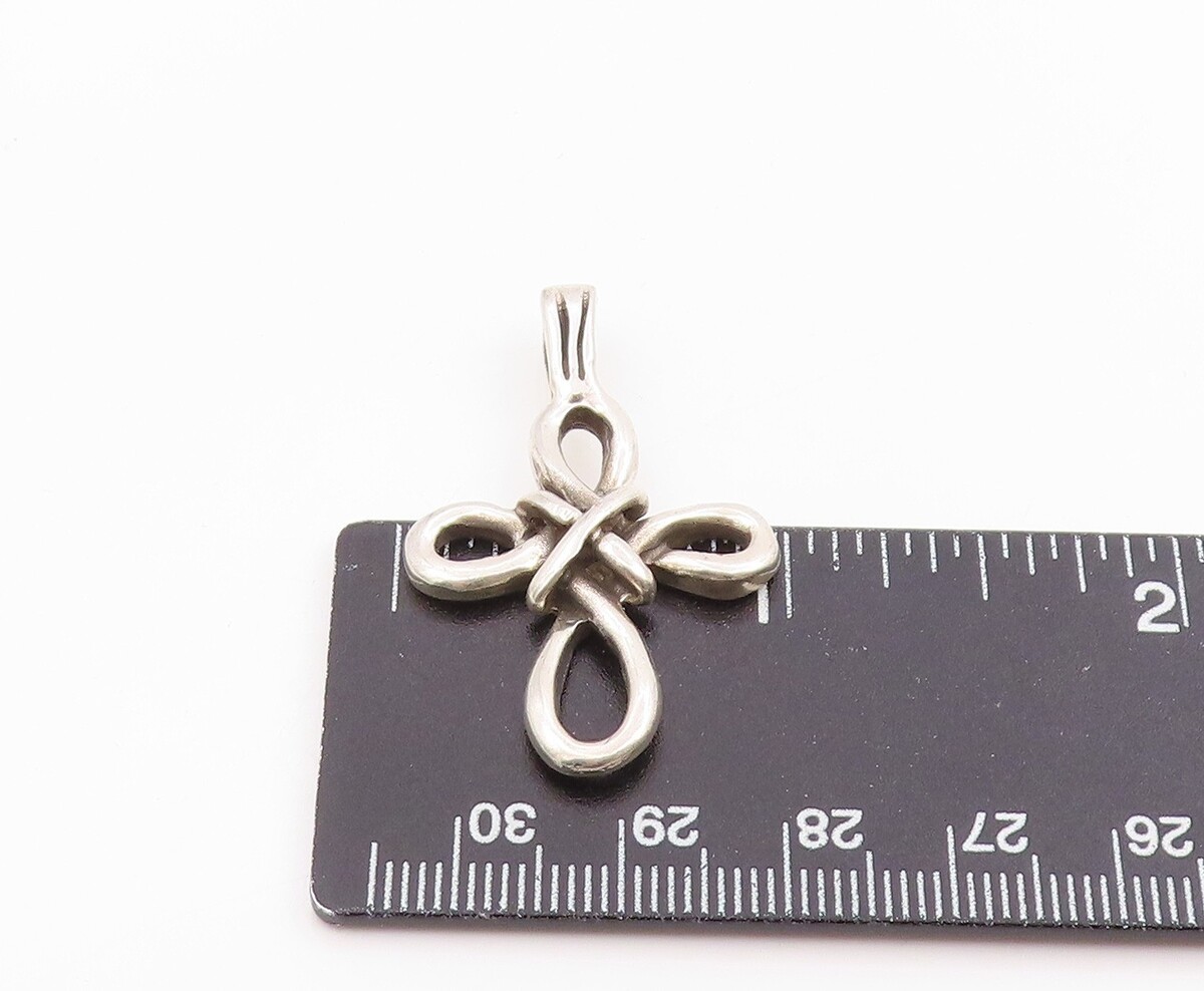 925 Sterling Silver Vintage Pendant Modernist Celtic Knot Holy Cross PT26127
