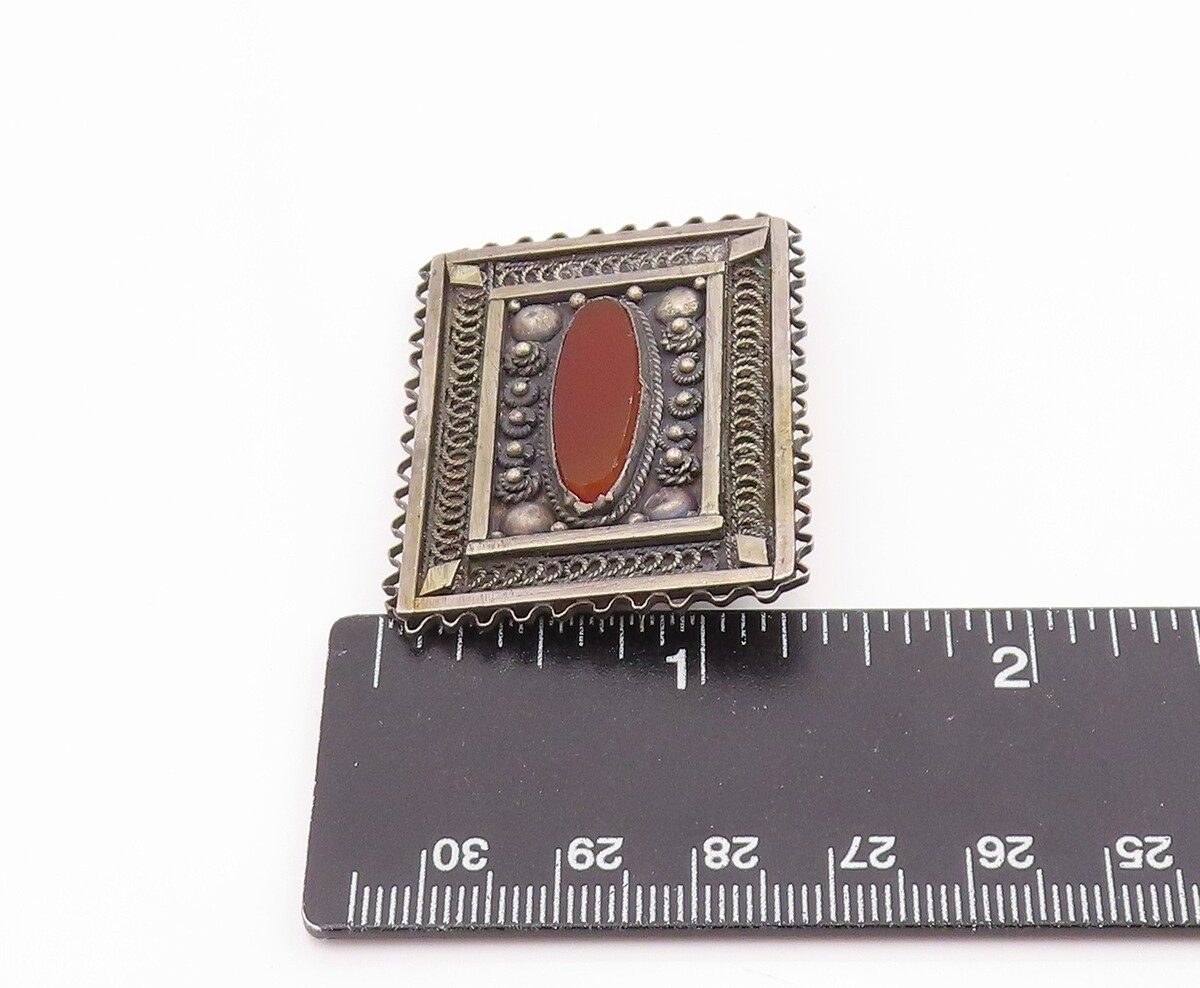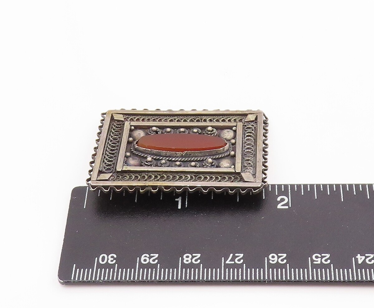 925 Sterling Silver Vintage Brooch Pin Carnelian Rectangular Filigree BP12520