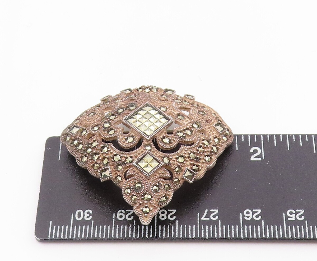 925 Sterling Silver Vintage Brooch Pin JUDITH JACK Marcasite Openwork BP12522