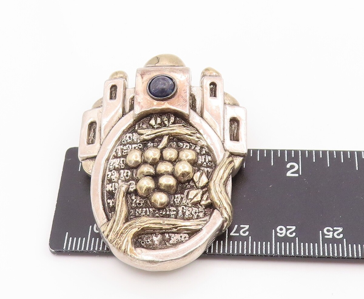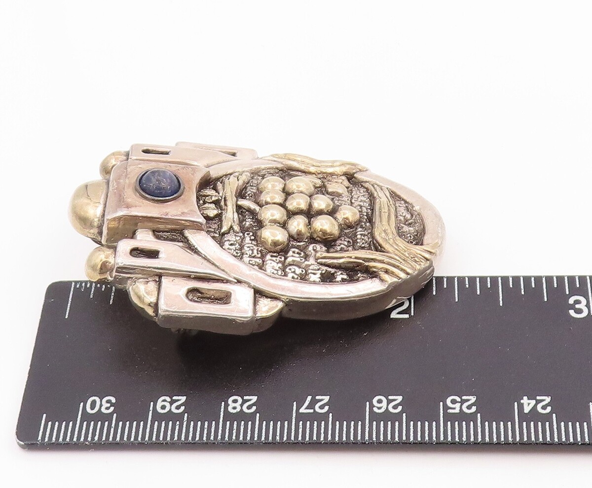 14k Gold & 925 Sterling Silver Vintage Brooch FRANK MEISLER Lapis Lazuli BP12529