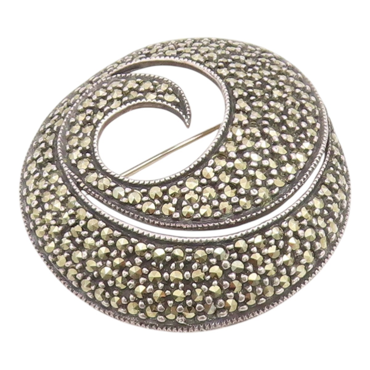 925 Sterling Silver Vintage Brooch Pin JUDITH JACK Marcasite Swirl BP12525