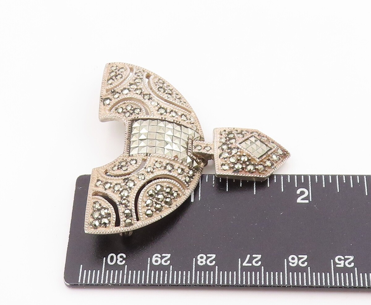 925 Sterling Silver Vintage Brooch Pin JUDITH JACK Marcasite Openwork BP12526