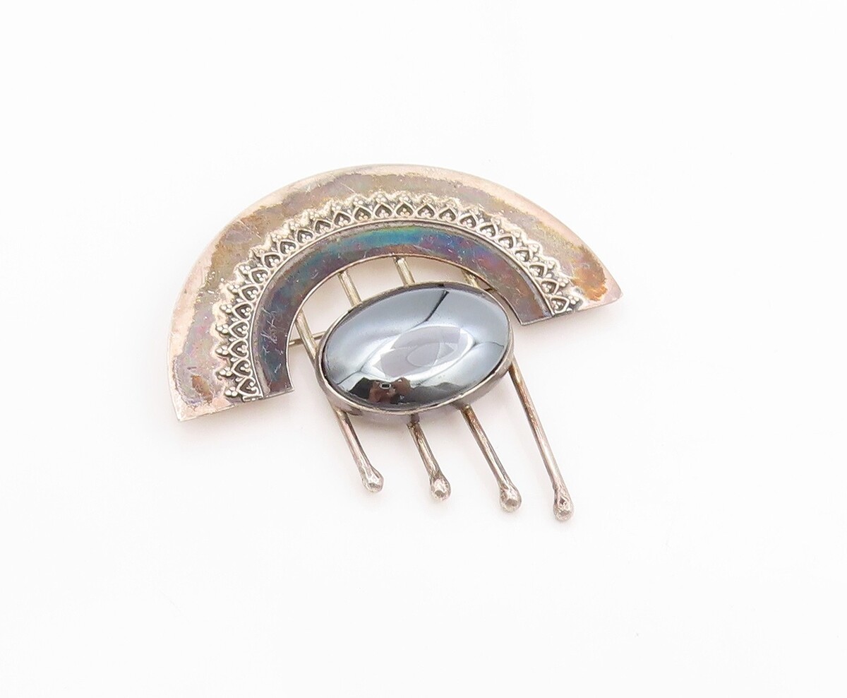 925 Sterling Silver Vintage Brooch Pin Oval Hematite Celestial Design BP12531