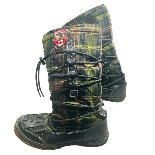 Pajar Canada Plaid Grip Tall Lace Up Insulated Waterproof Winter Boots 8-8.5