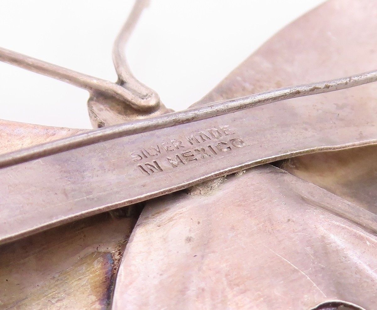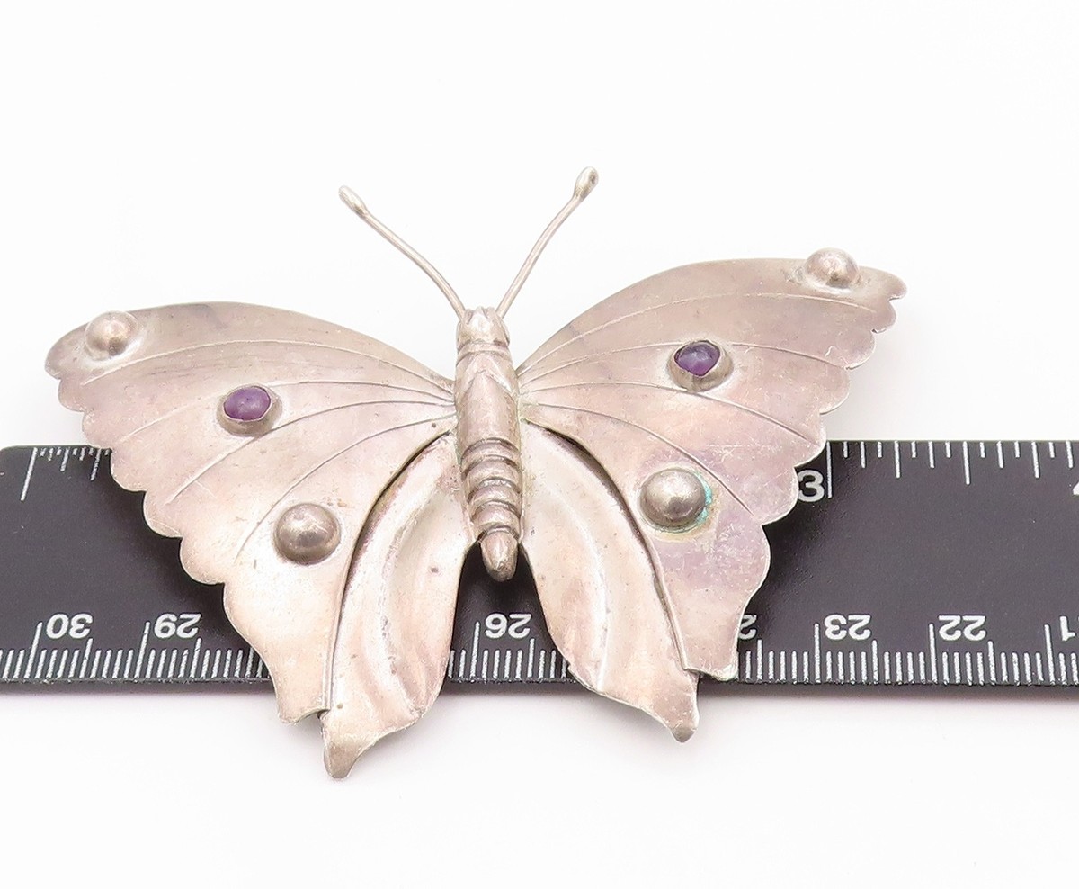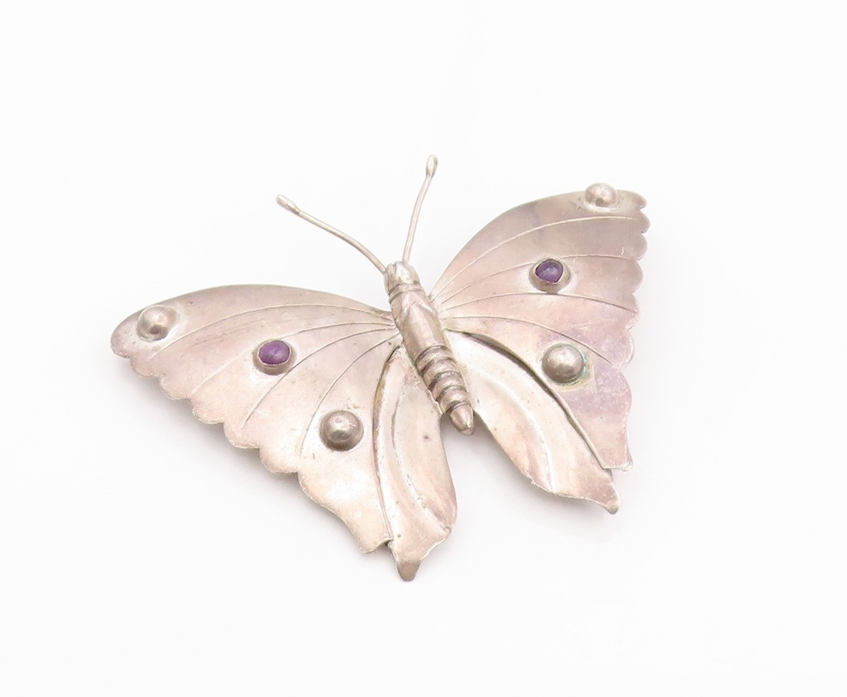 925 Sterling Silver Vintage Brooch Pin MEXICO Round Amethyst Butterfly BP12509