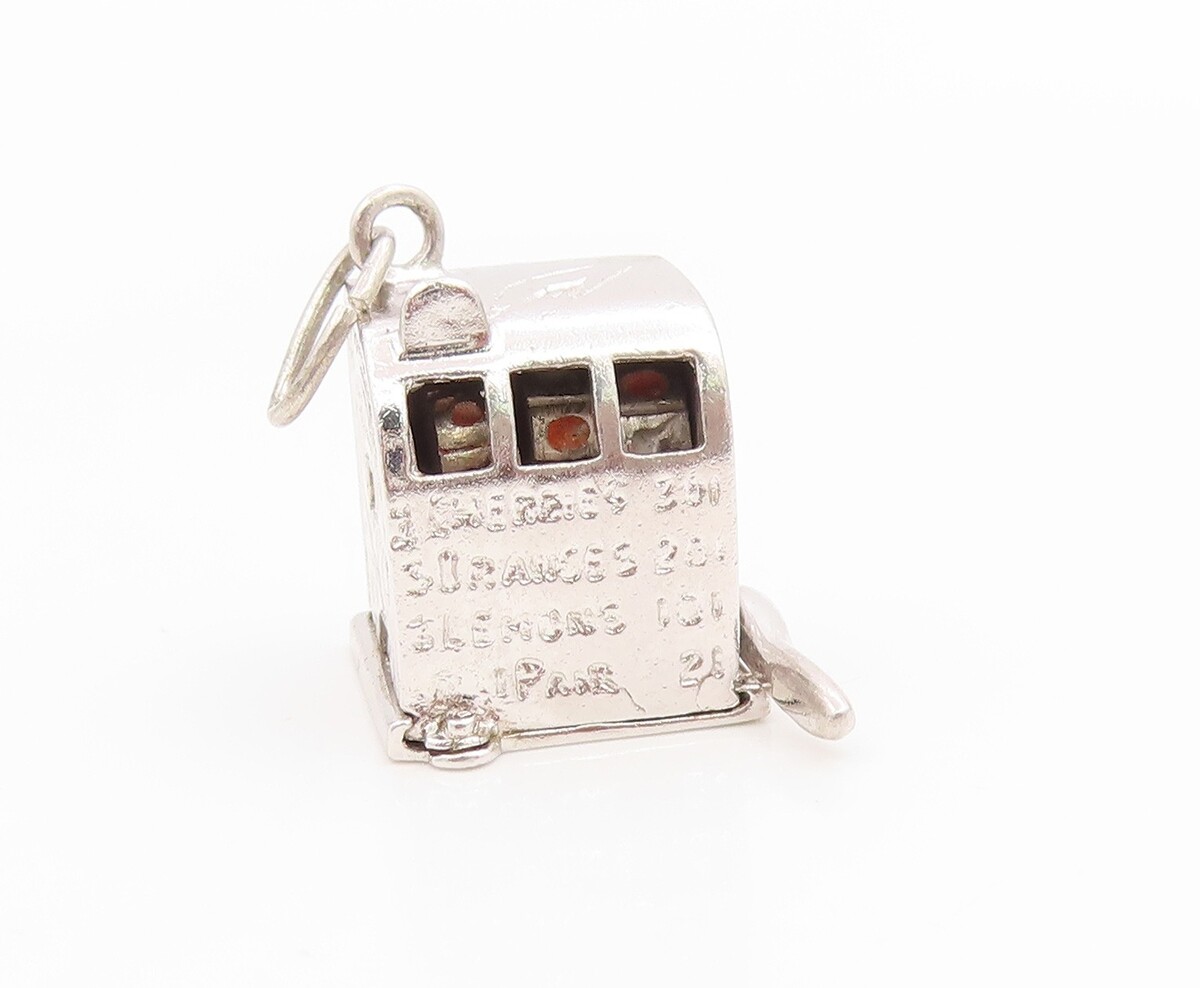 925 Sterling Silver Vintage Pendant Slot Machine With Fruit Details PT26154