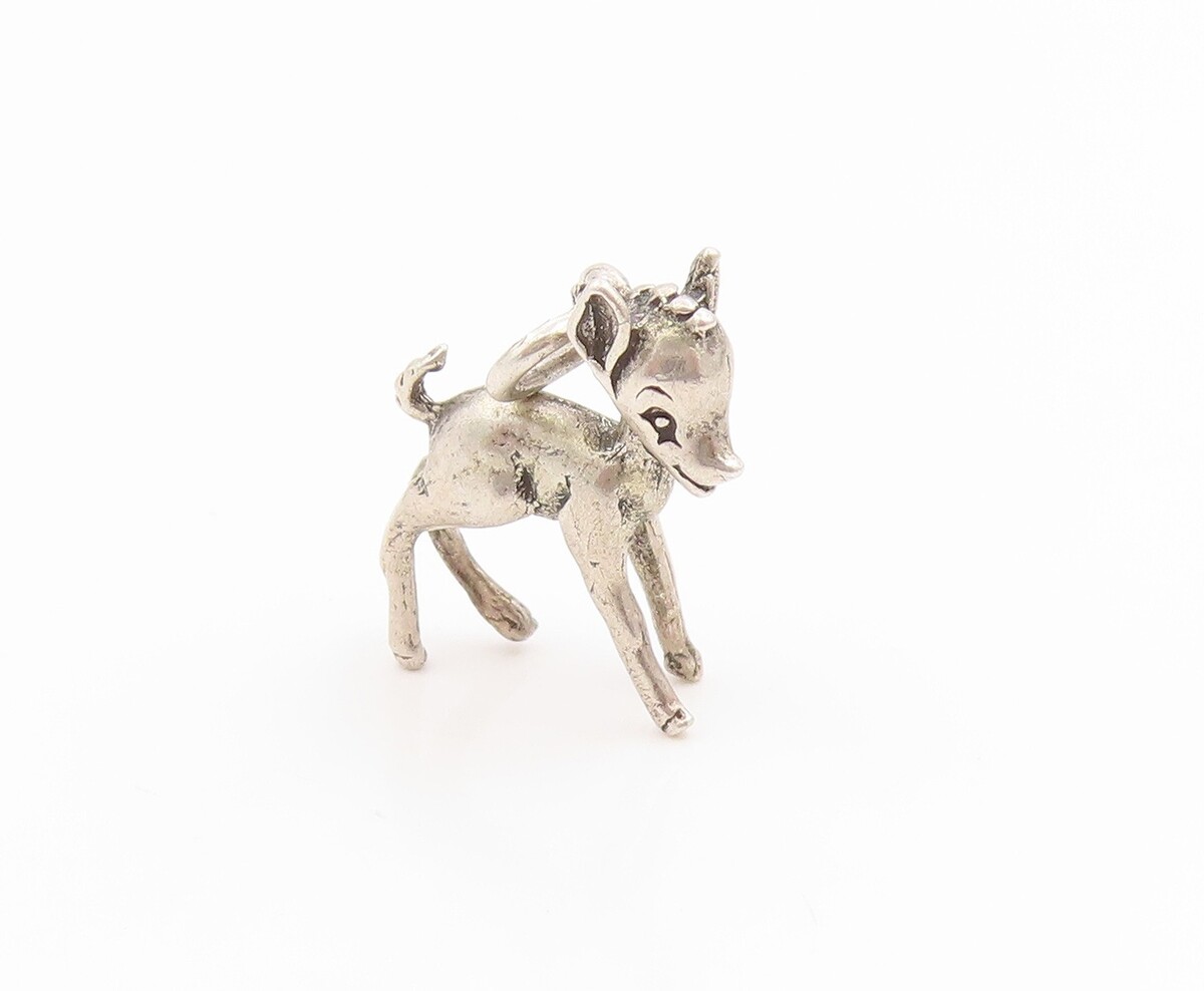 925 Sterling Silver Vintage Pendant Miniature Young Fawn Deer Charm PT26157