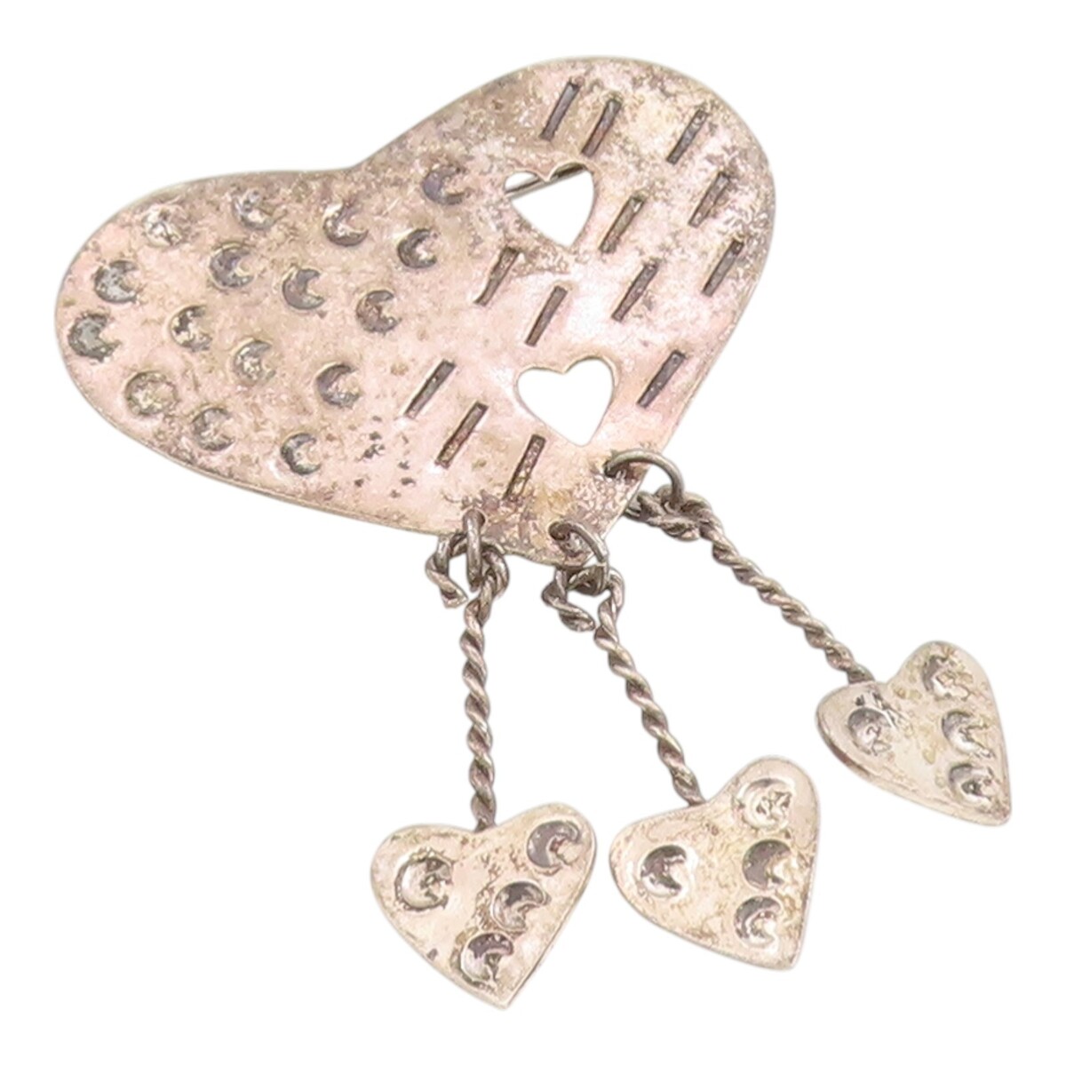 925 Sterling Silver Vintage Brooch Pin Taxco MEXICO Etched Love Hearts BP12510
