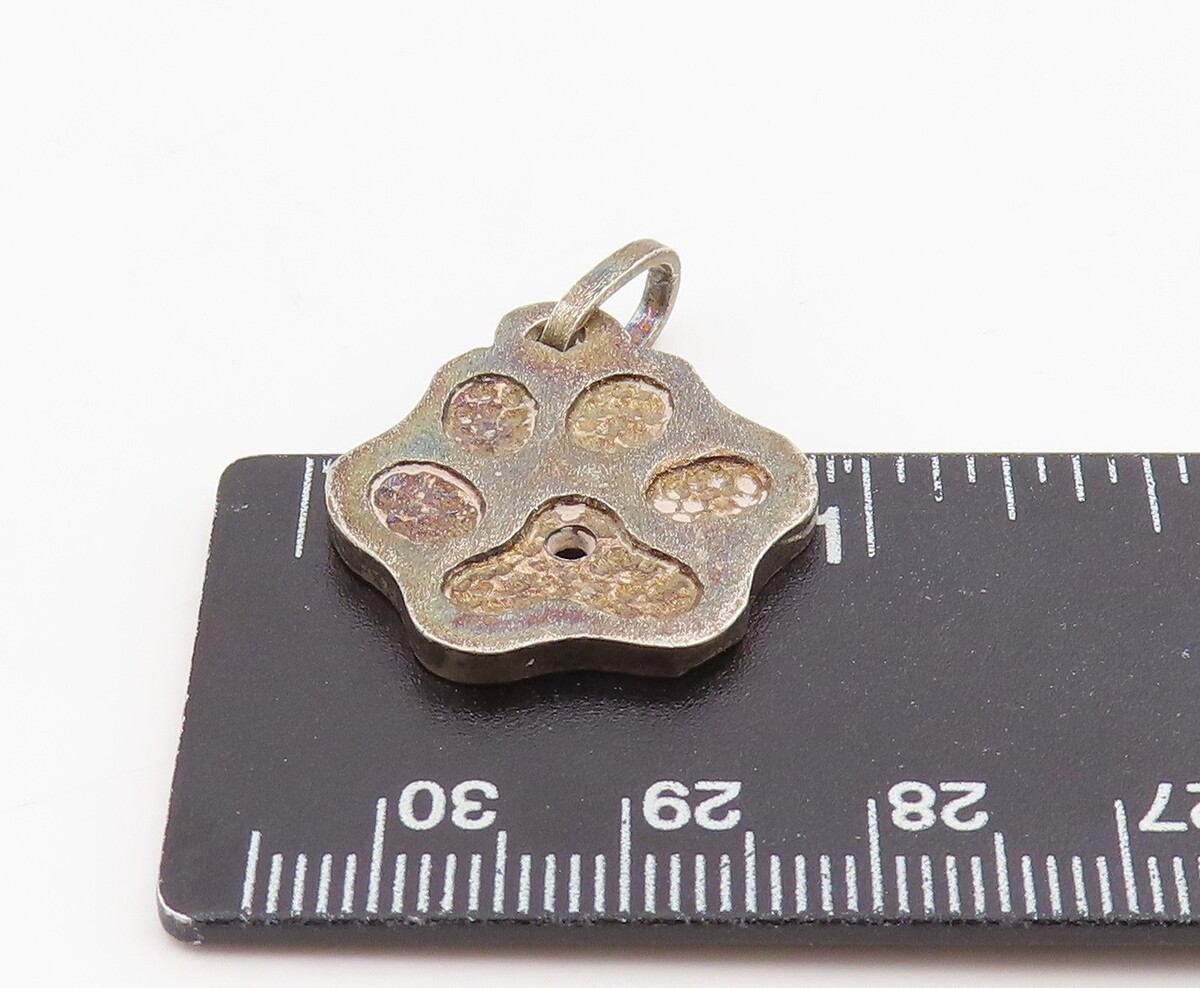 925 Sterling Silver Vintage Pendant Textured Carved Dog Paw Print Charm PT26161