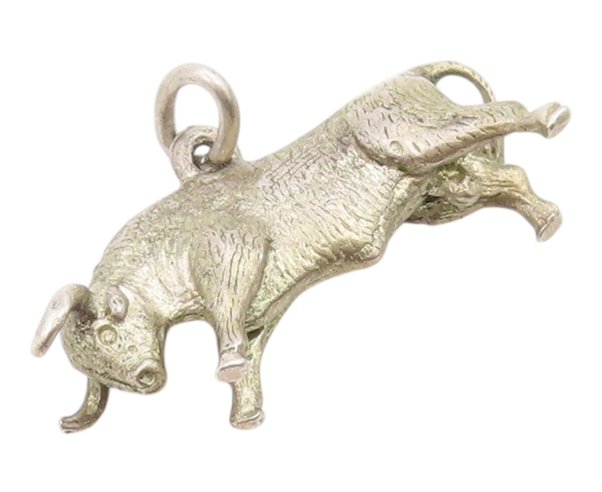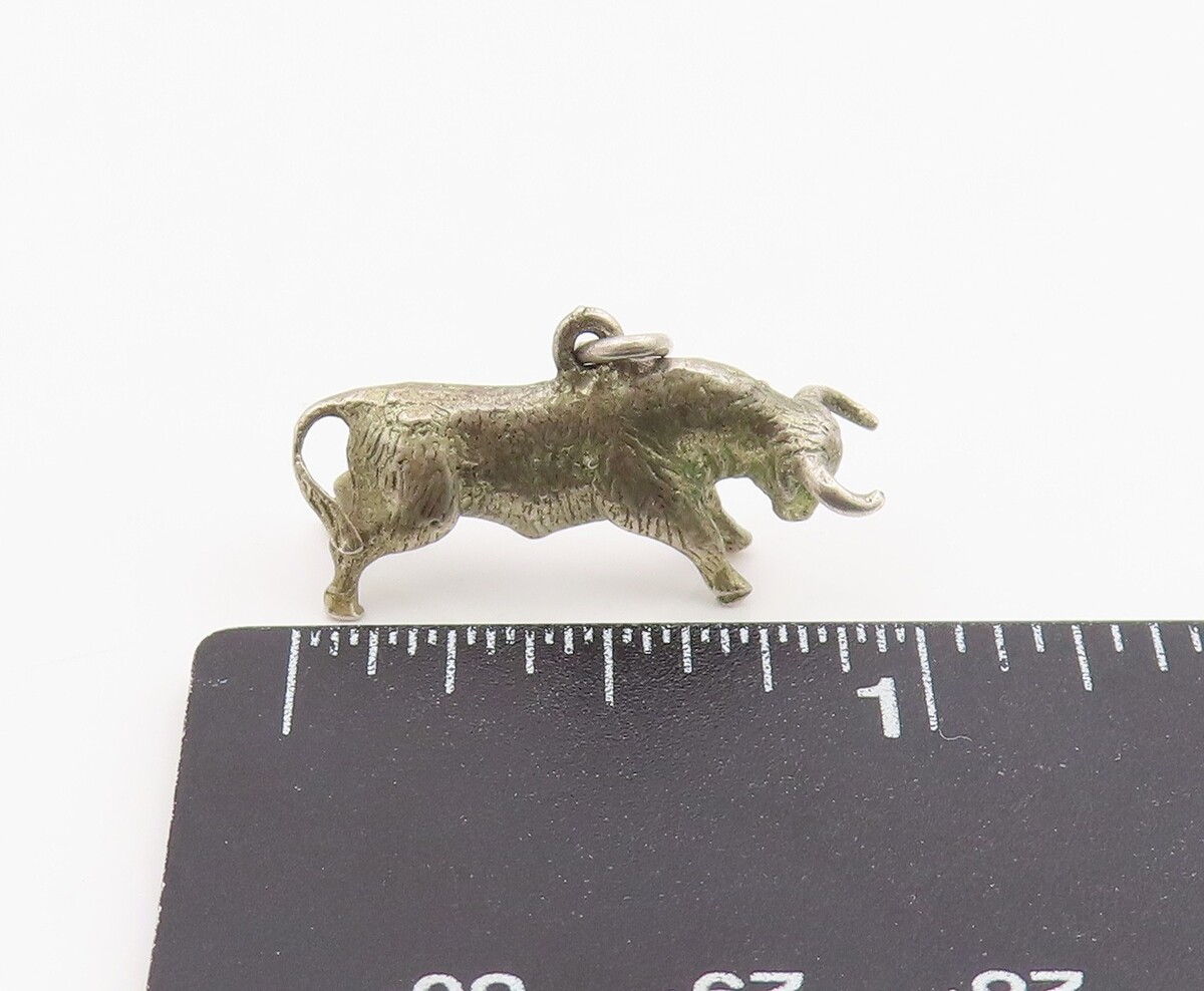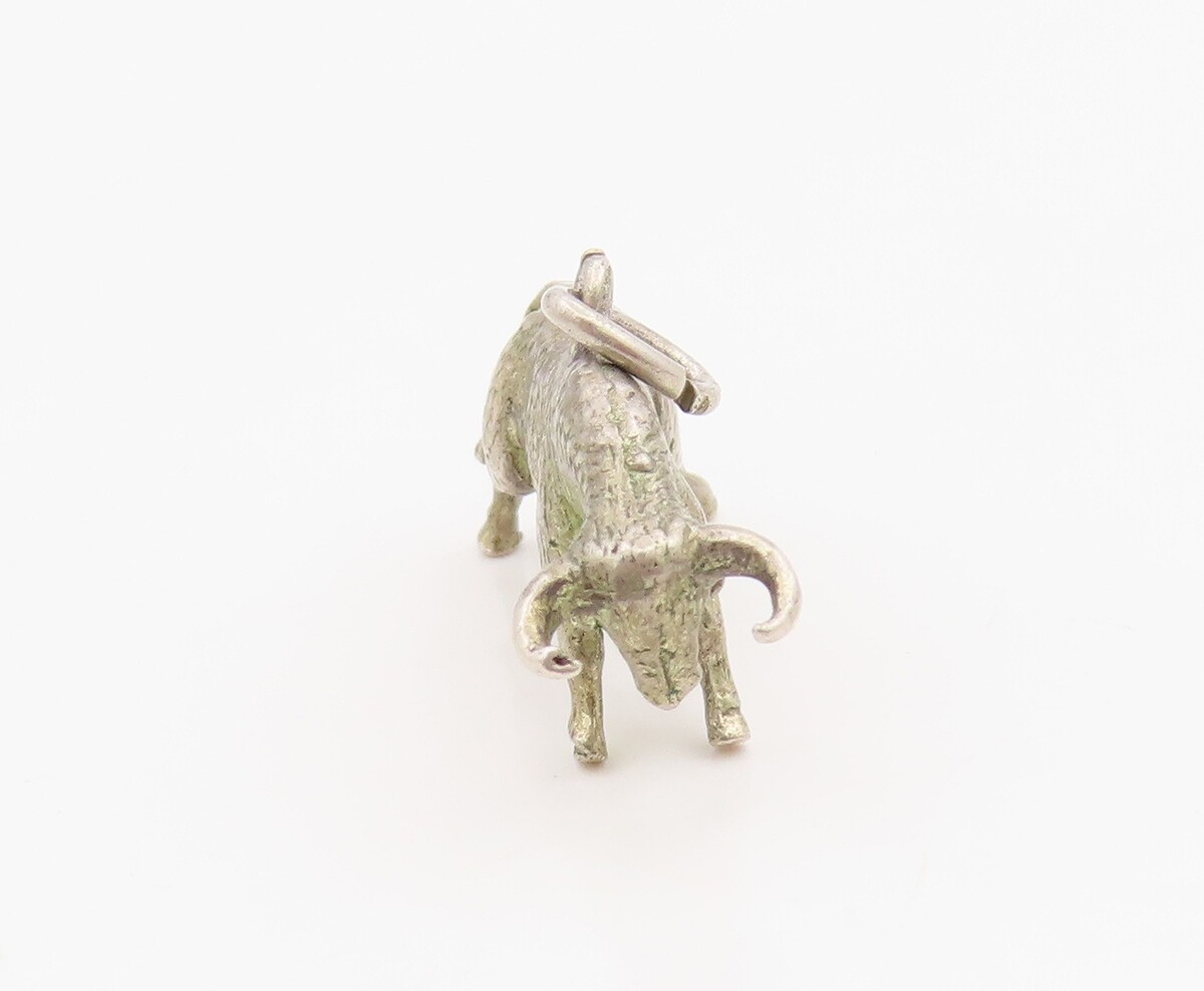 925 Sterling Silver Vintage Pendant 3D Wall Steet Raging Charging Bull PT26165