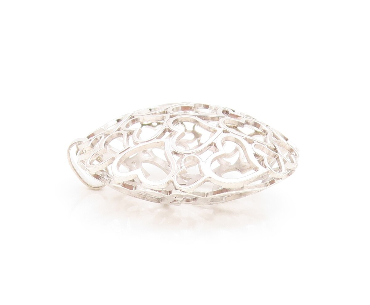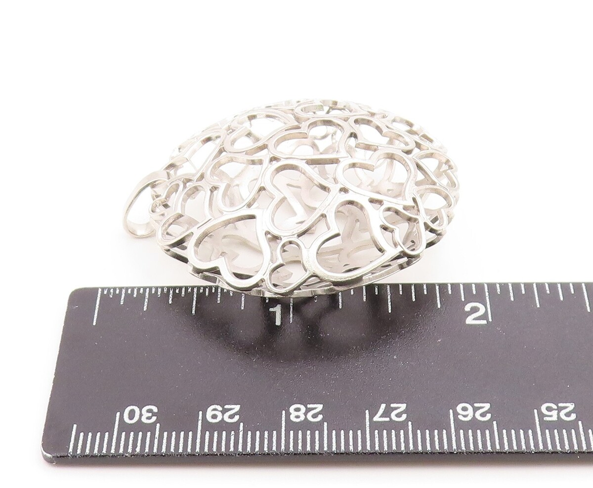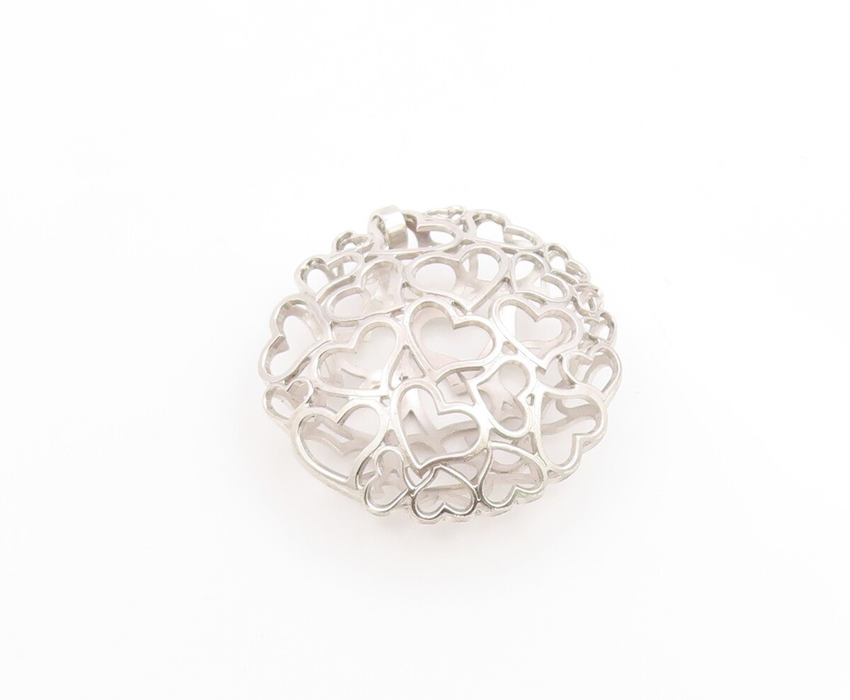 925 Sterling Silver Vintage Pendant Modernist Love Hearts Outline Orb PT26172