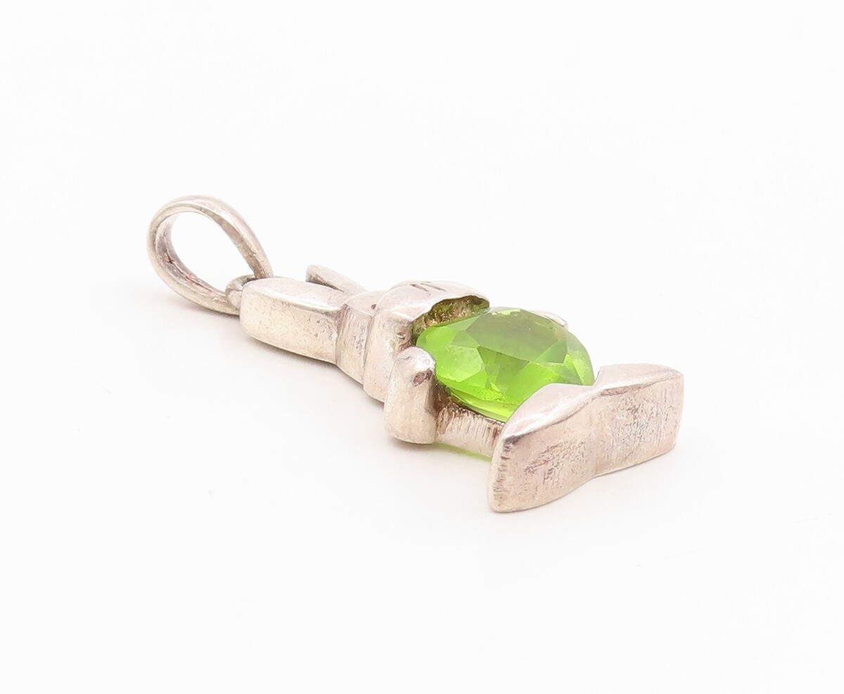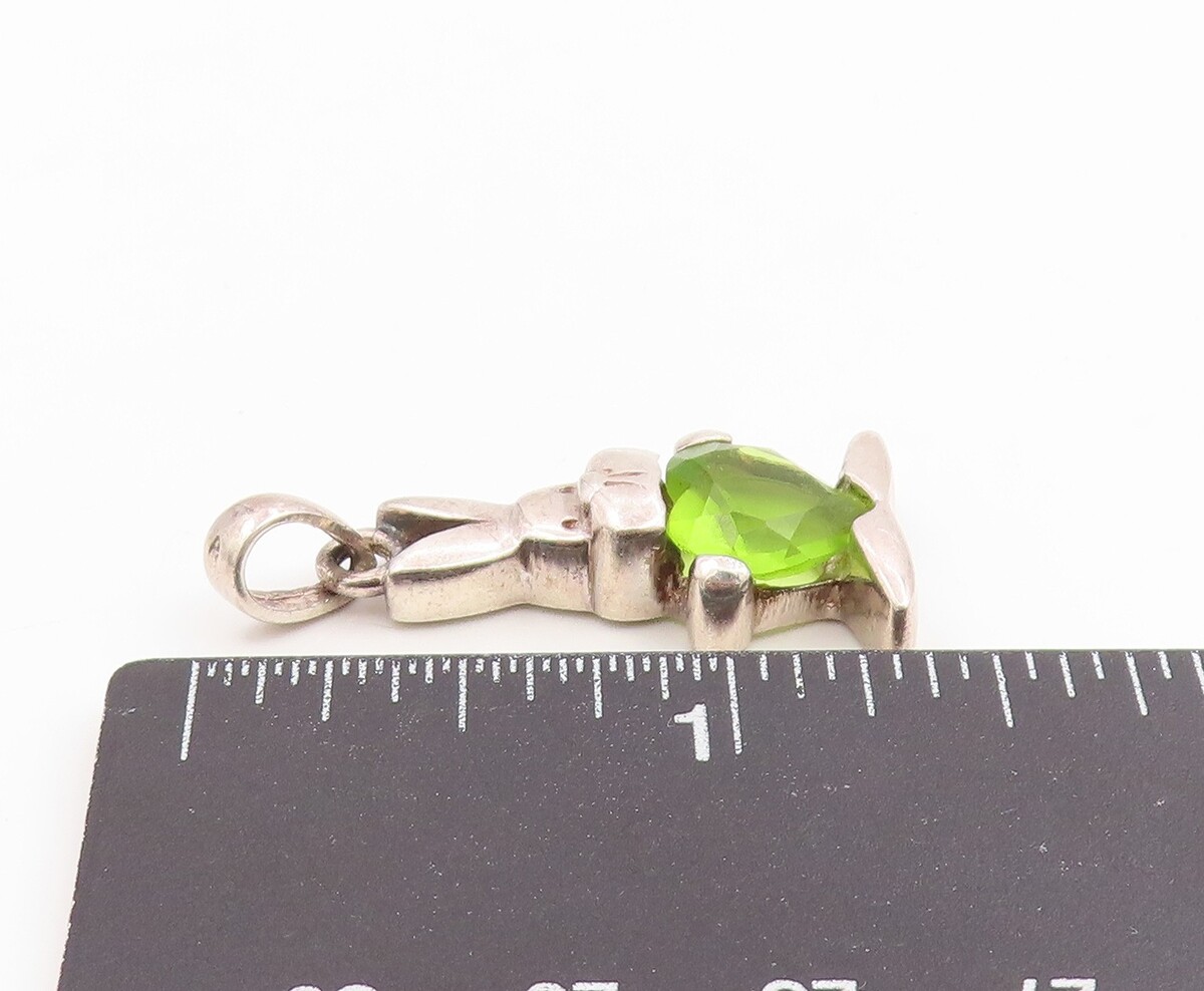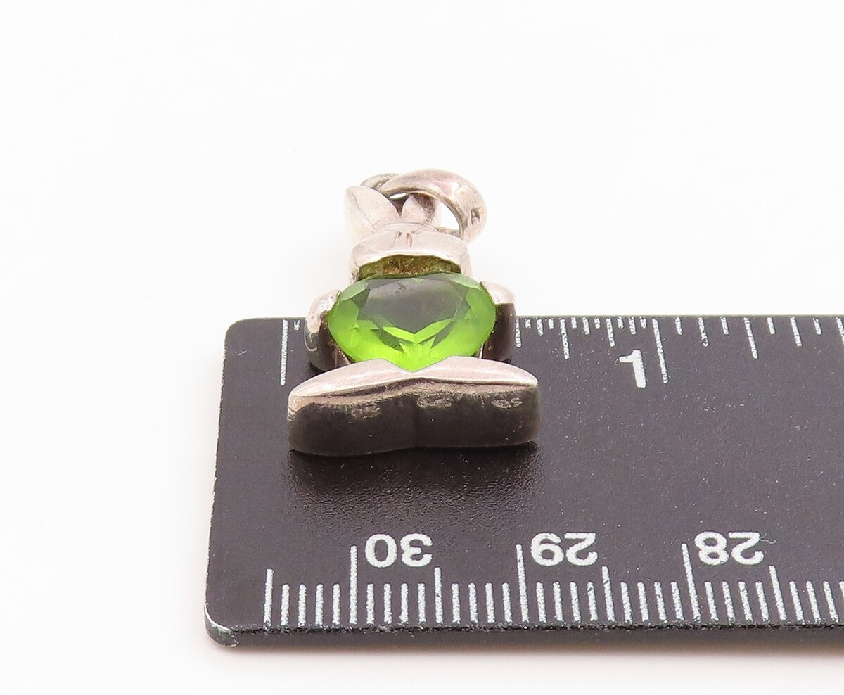 925 Sterling Silver Vintage Pendant Heart Shaped Peridot Bunny Charm PT26186