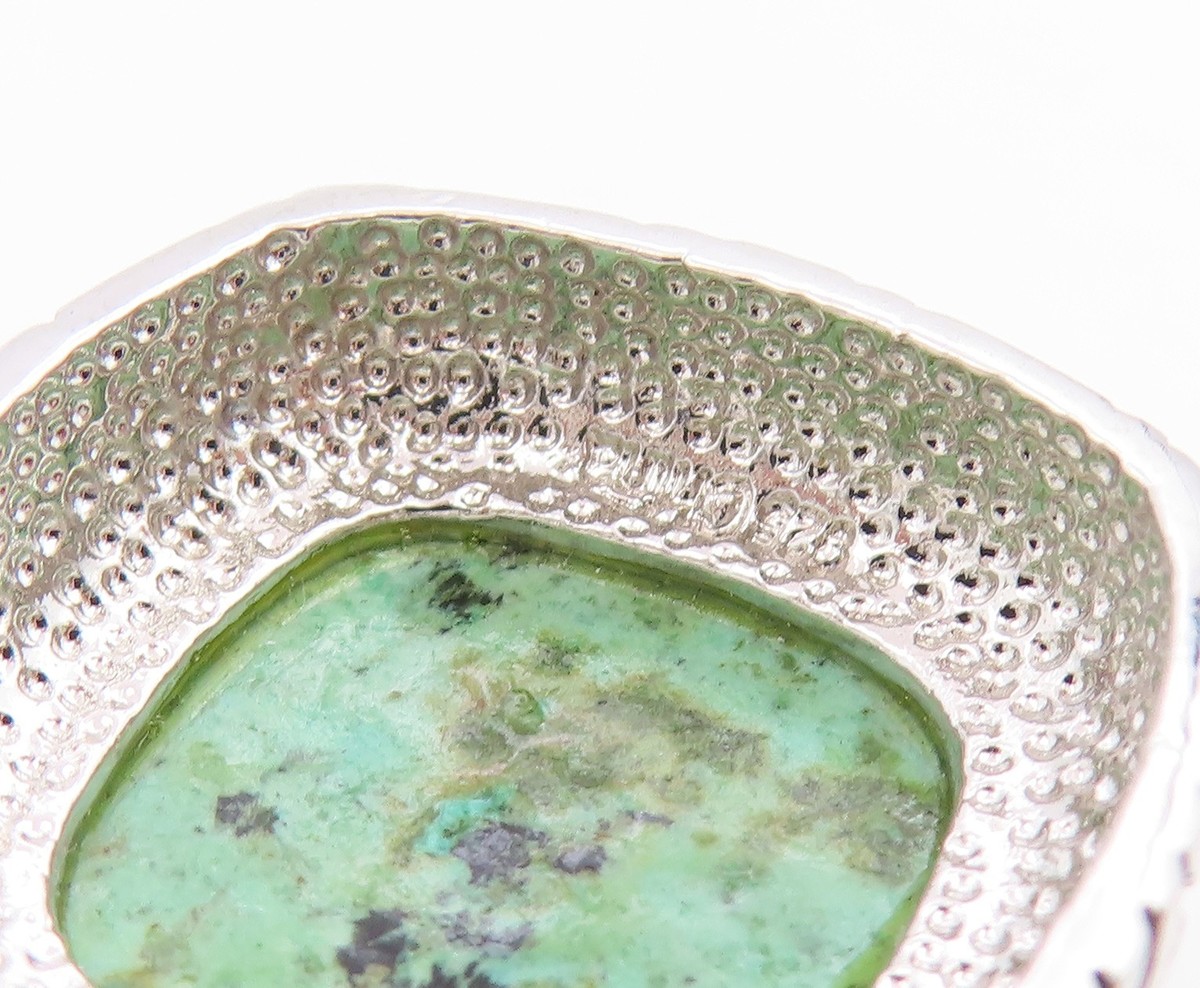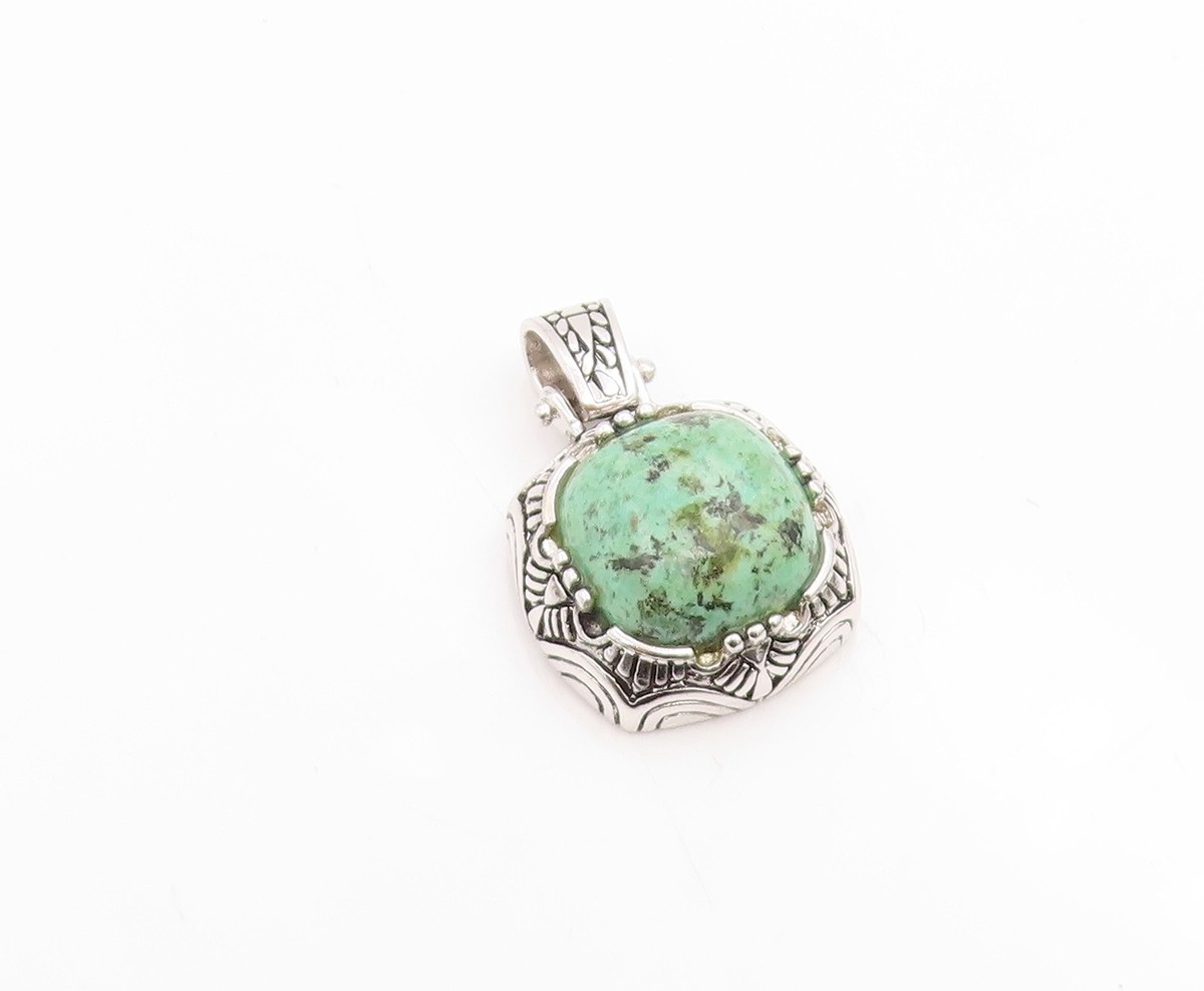 925 Sterling Silver Vintage Pendant Cabochon Turquoise Geometric Charm PT26188