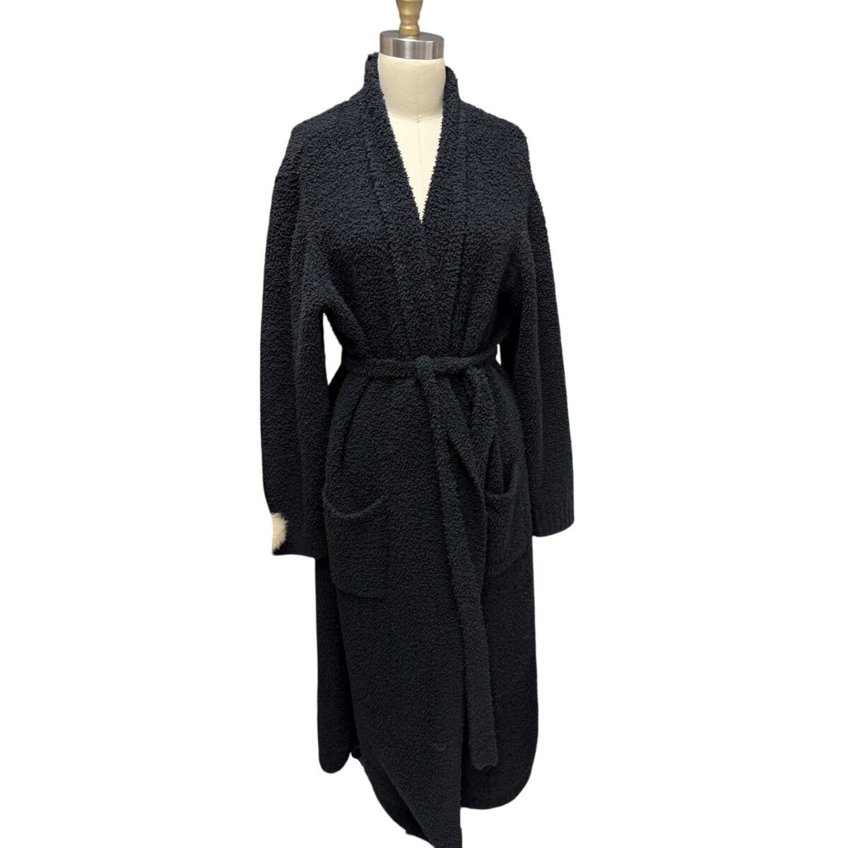 SKIMS Plush Bouclé Robe Black Belted Cozy Lounge Wrap S/M