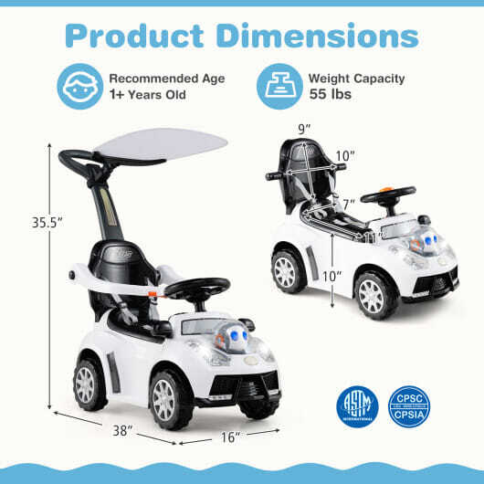 3 in 1 Push Car for Toddler Stroller Sliding Walking Car for Boys and Girls-Whit