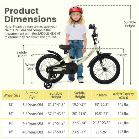 18 Inches Kids Bike Sport Bicycle with Removable Training Wheels - Size: 18 inch