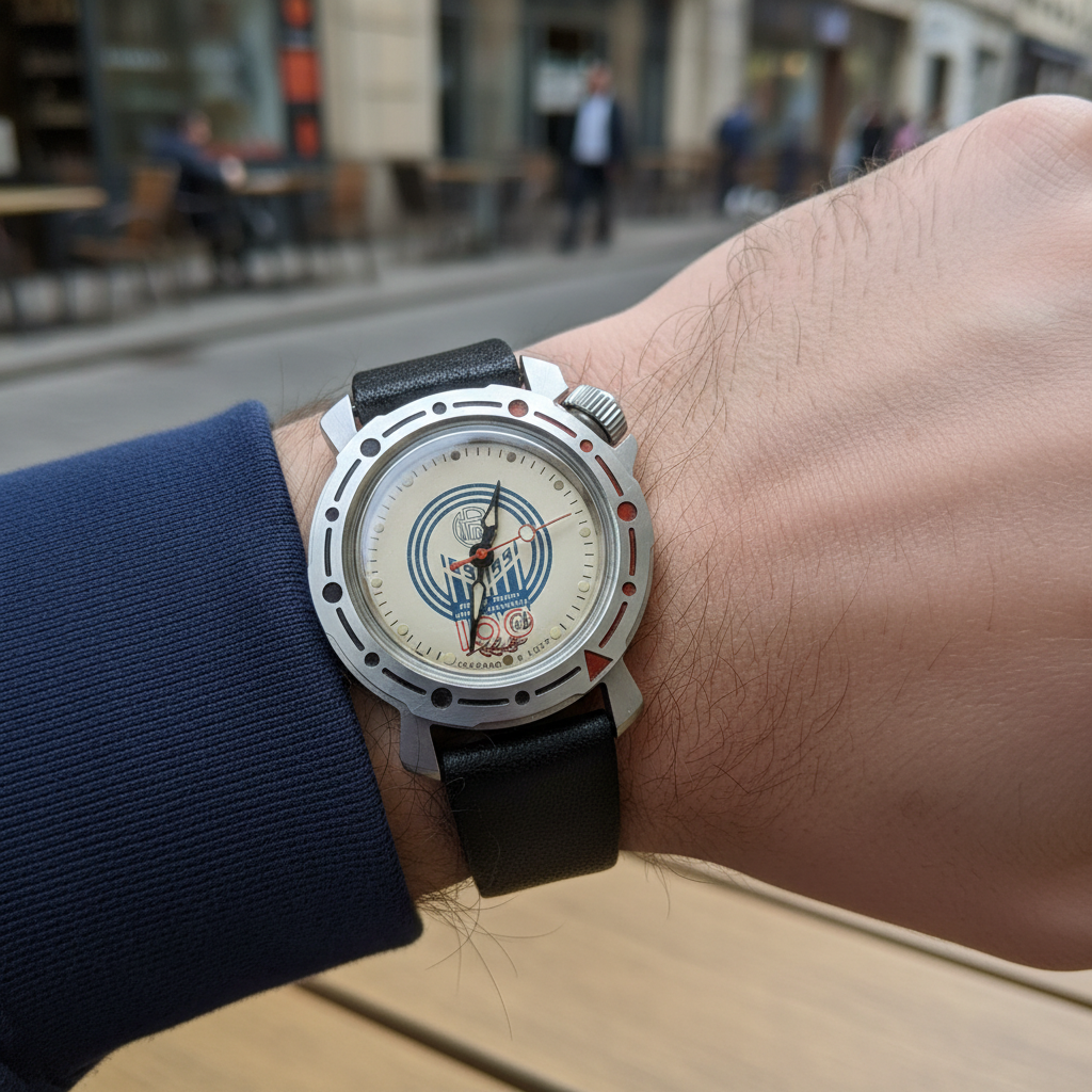 Vintage Soviet Mechanical Wristwatch Commemorative Diver Style 17 Jewels Water Resistant