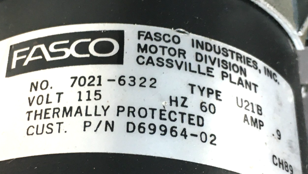 This is FASCO 7021-6322 Draft Inducer Blower Motor Assembly D69964-02 115V used part.