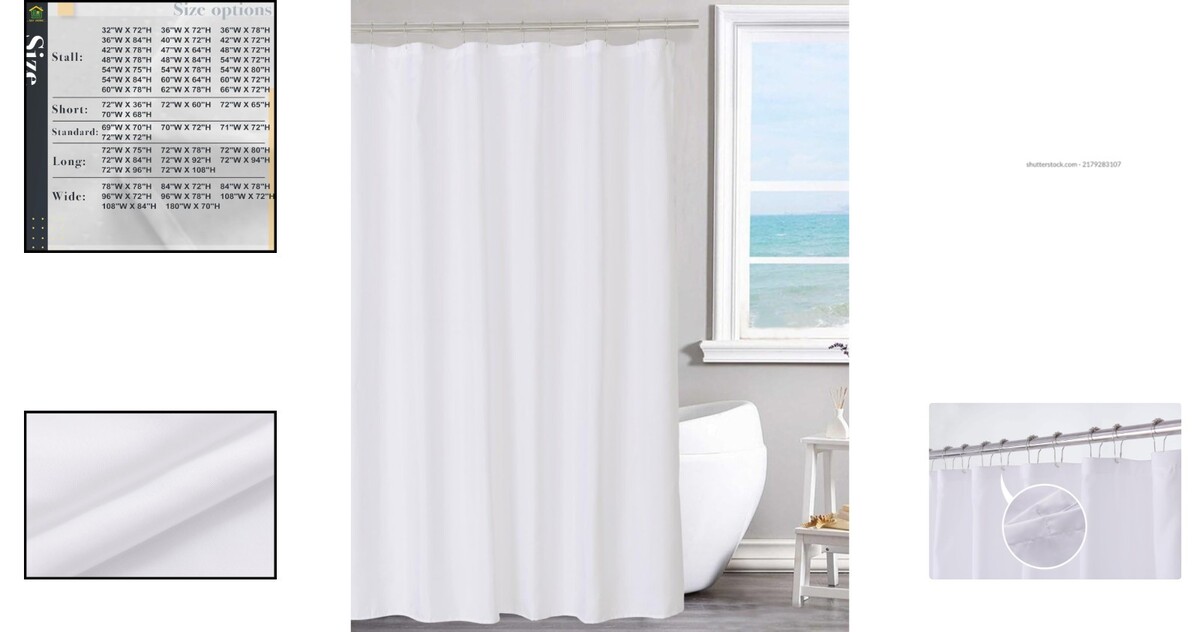 Hotel Quality White Shower Curtain Liner, 70x72 Inches, Waterproof & Machine ...