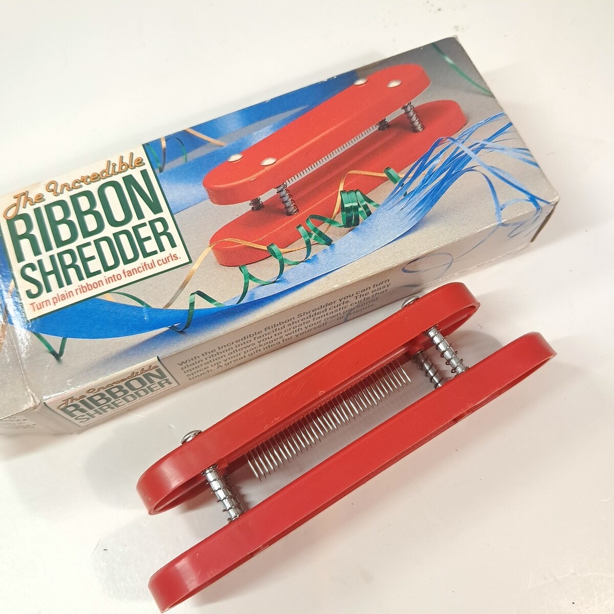 The Incredible Ribbon Shredder Gift Wrap Tool curler curls red Christmas vintage