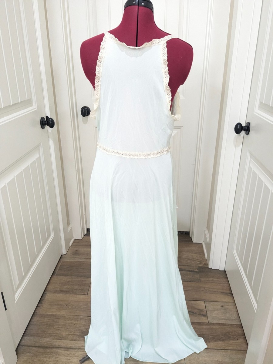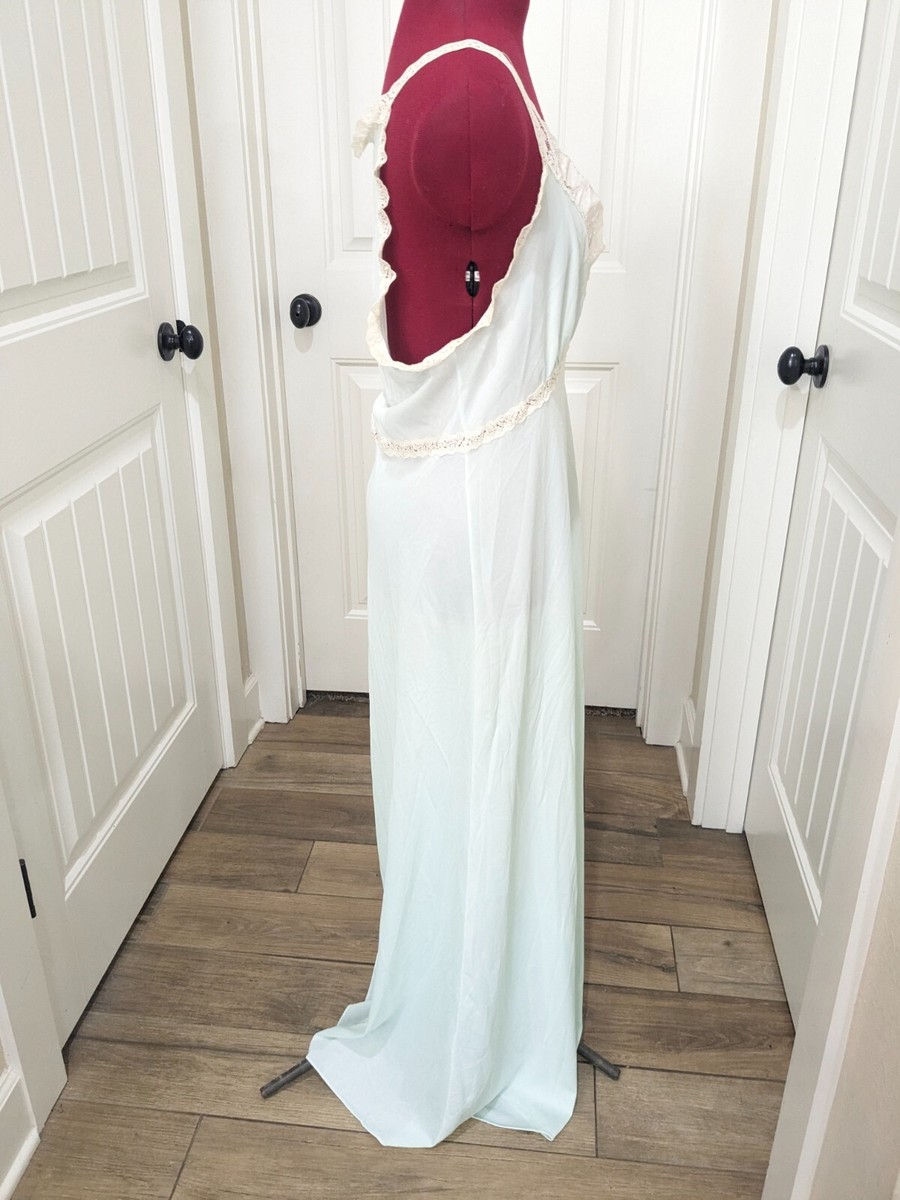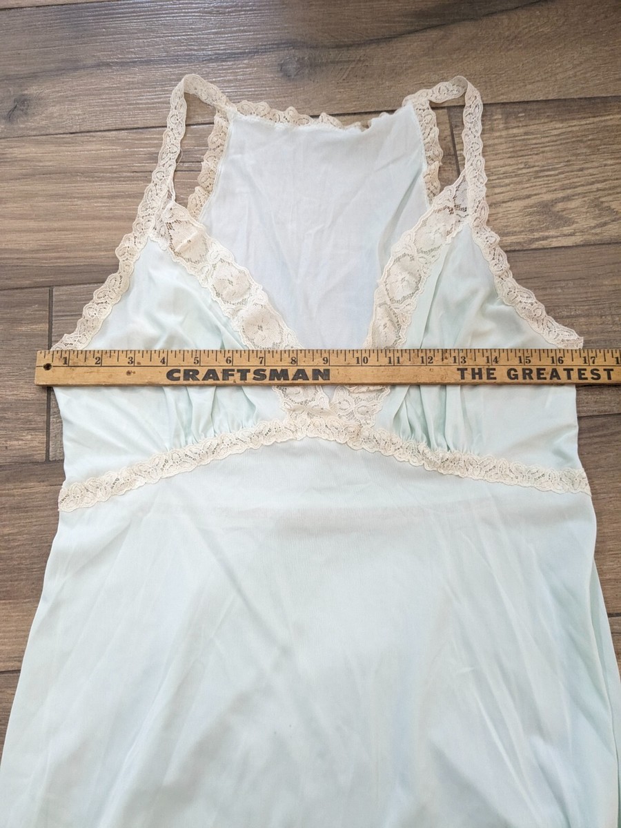 Vintage Vanity Fair Long Nightgown sz 36 green Soft Nylon lace trim nightie USA