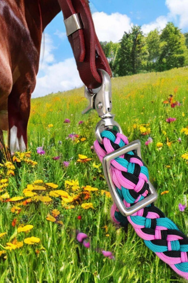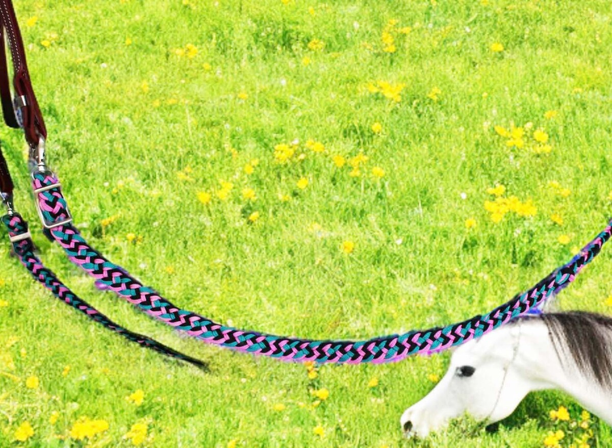 Horse Challenger Western Nylon Braided Roping Knotted Barrel Reins Pink Black