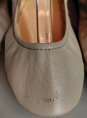 Item has been inspected and found to have s minute scuff on the front of the toe area of the flats otherwise- a gorgeous pair of must-have!!!!!