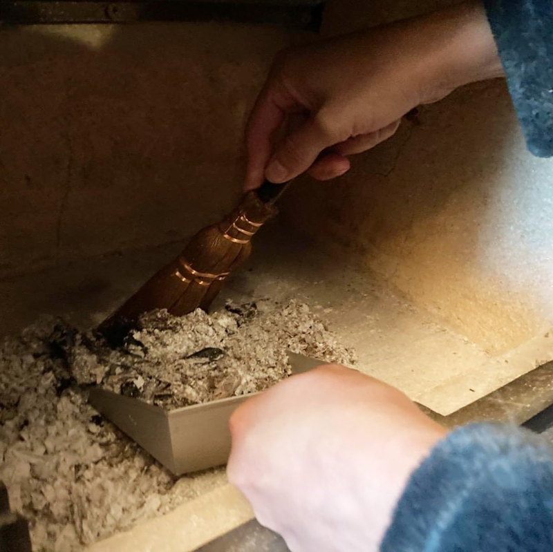 Mini Metal Dustpan and Brush Set Natural Bristle Hand Broom for Fireplace Woodstove