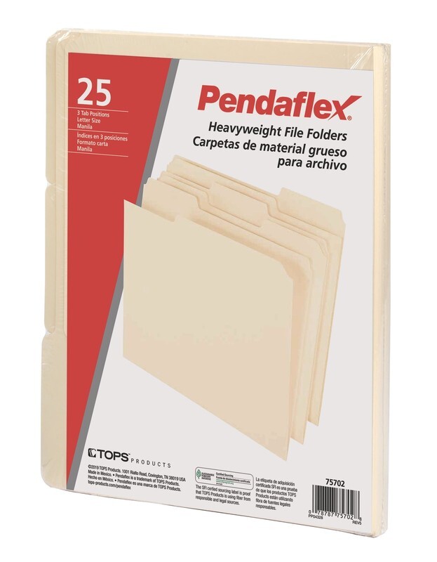 Free up desk space and clean up office clutter with these Pendaflex file folders! The 3 1/3-cut tabs allow ample space for labels to keep your files organized. Convenient letter size fits most standard documents. These folders are made from heavyweight Manila stock to keep your documents looking crisp and professional.