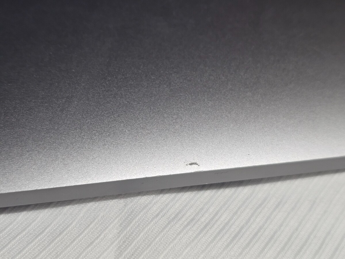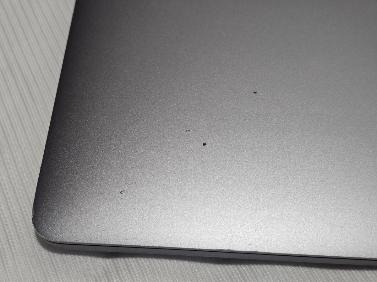 This is a refurbished macbook. There are no scratches or imperfections other than the rubber feet on the bottom (shows slight signs of use)