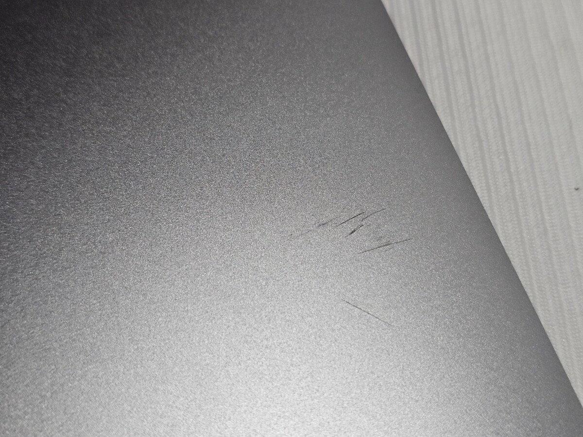 This is a refurbished macbook. There are no scratches or imperfections other than the rubber feet on the bottom (shows slight signs of use)