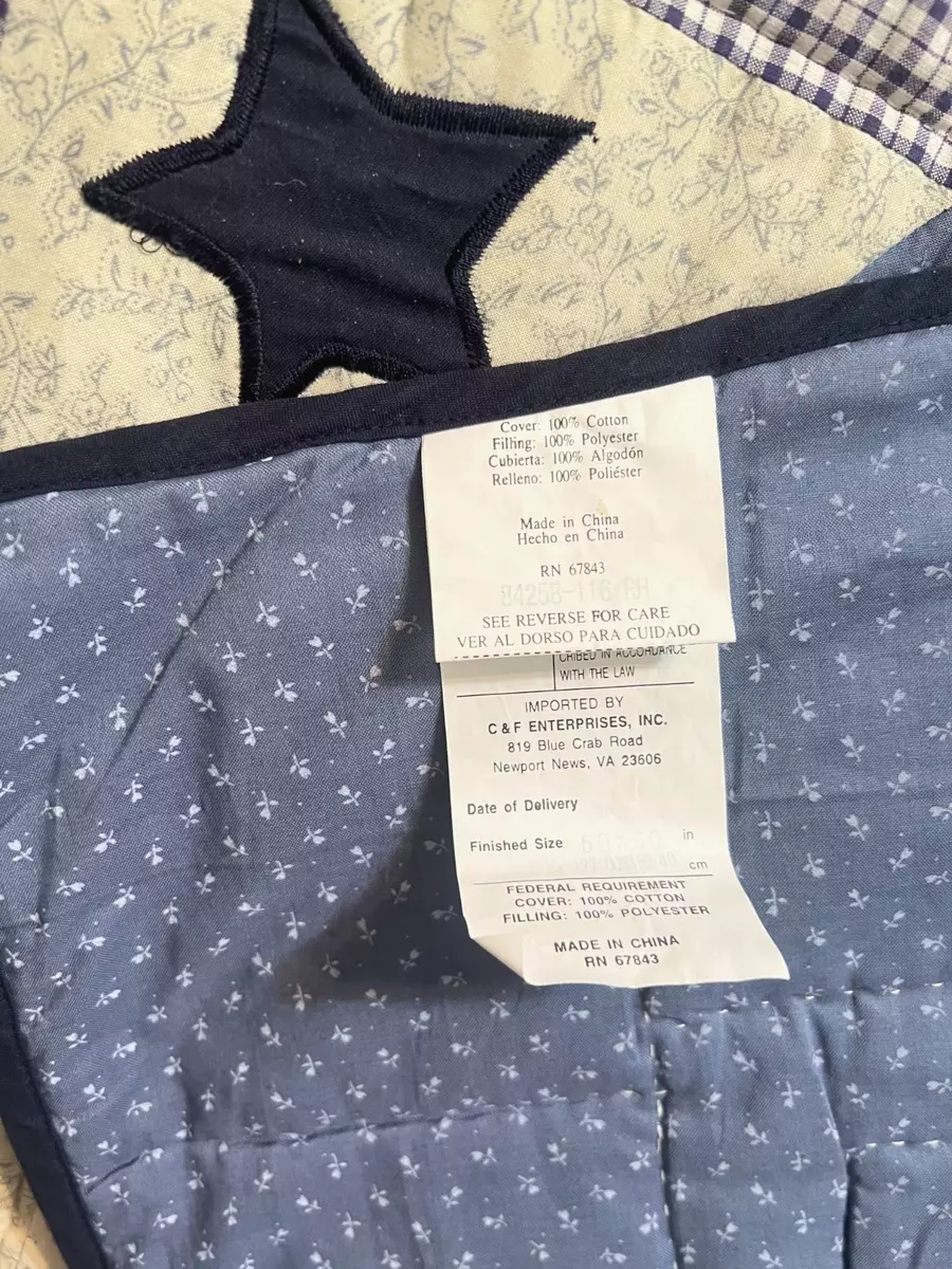 C F Home / Enterprises RN 67843. This is a throw blanket, not a heavy bed blanket.