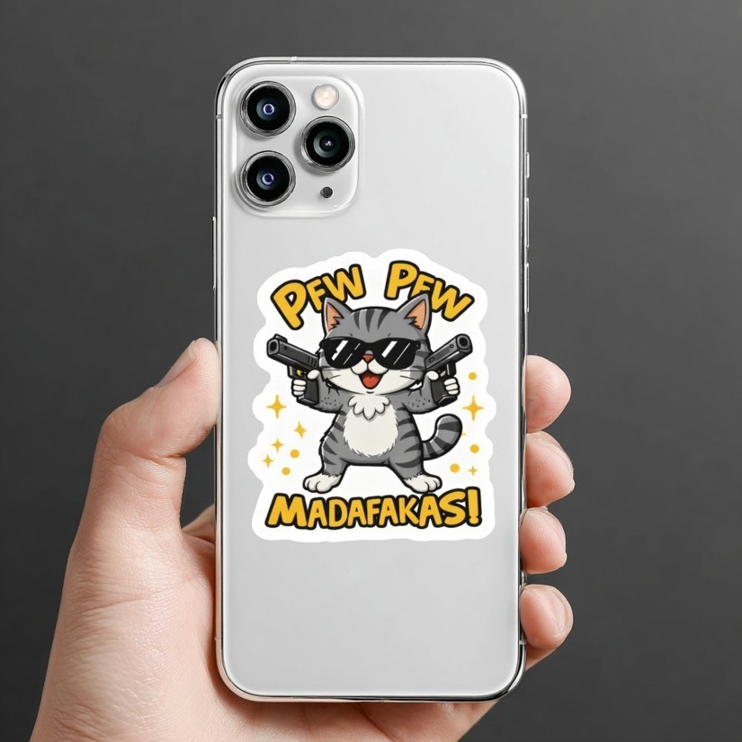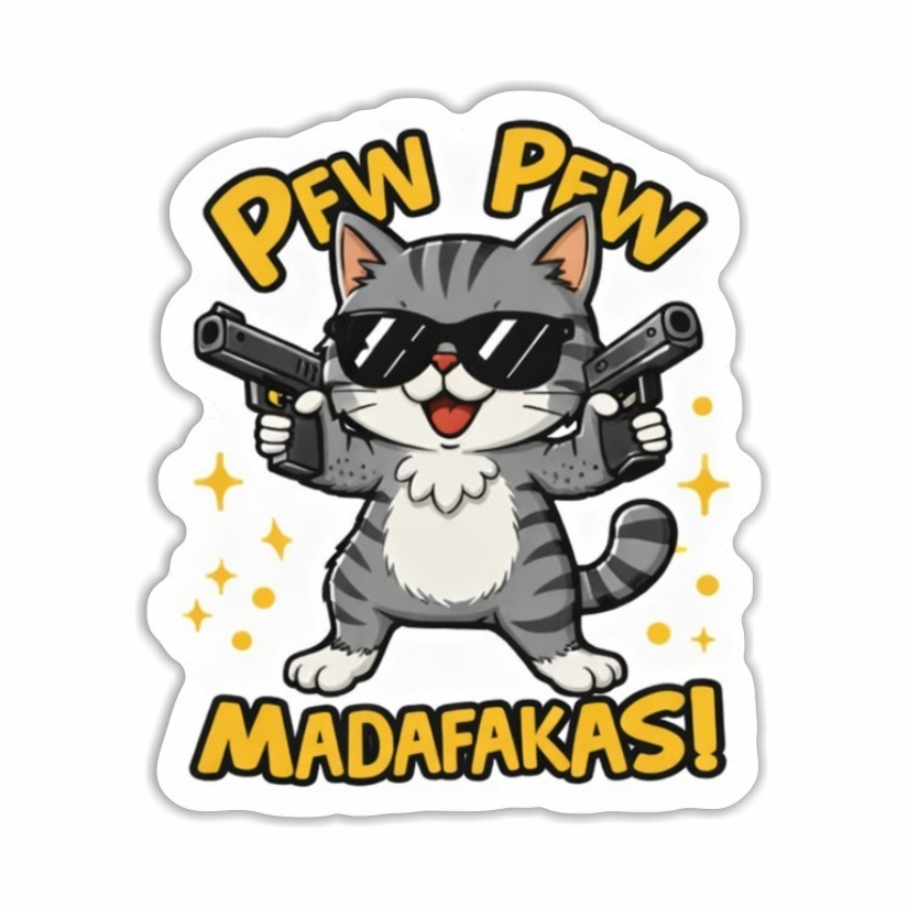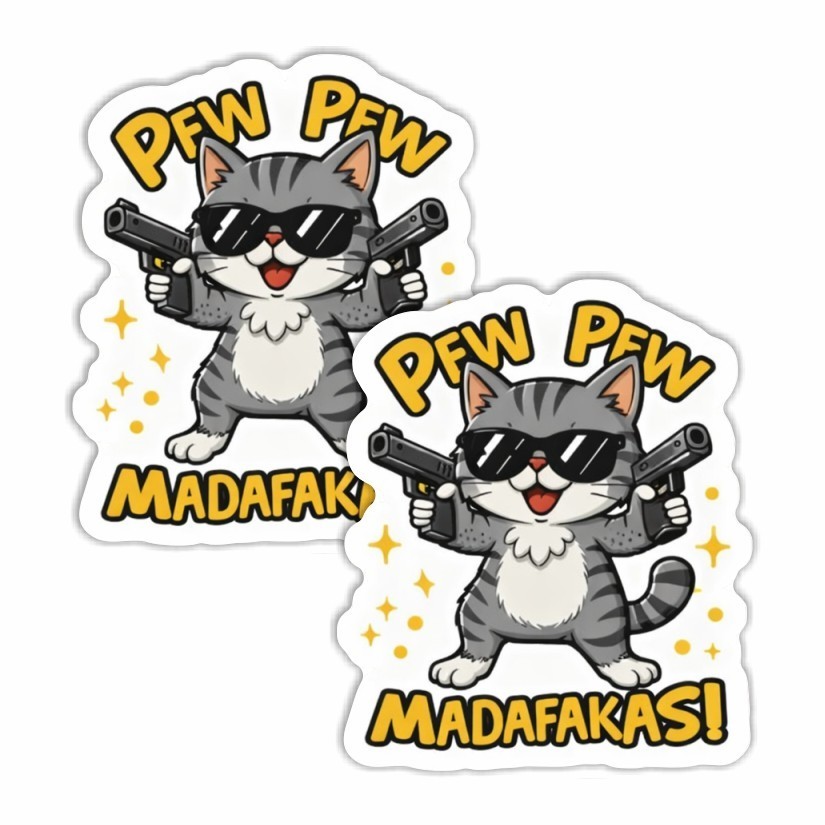 PEW PEW MADAFAKAS! Funny Cat Sticker, Peel N' Stick, Different Sizes