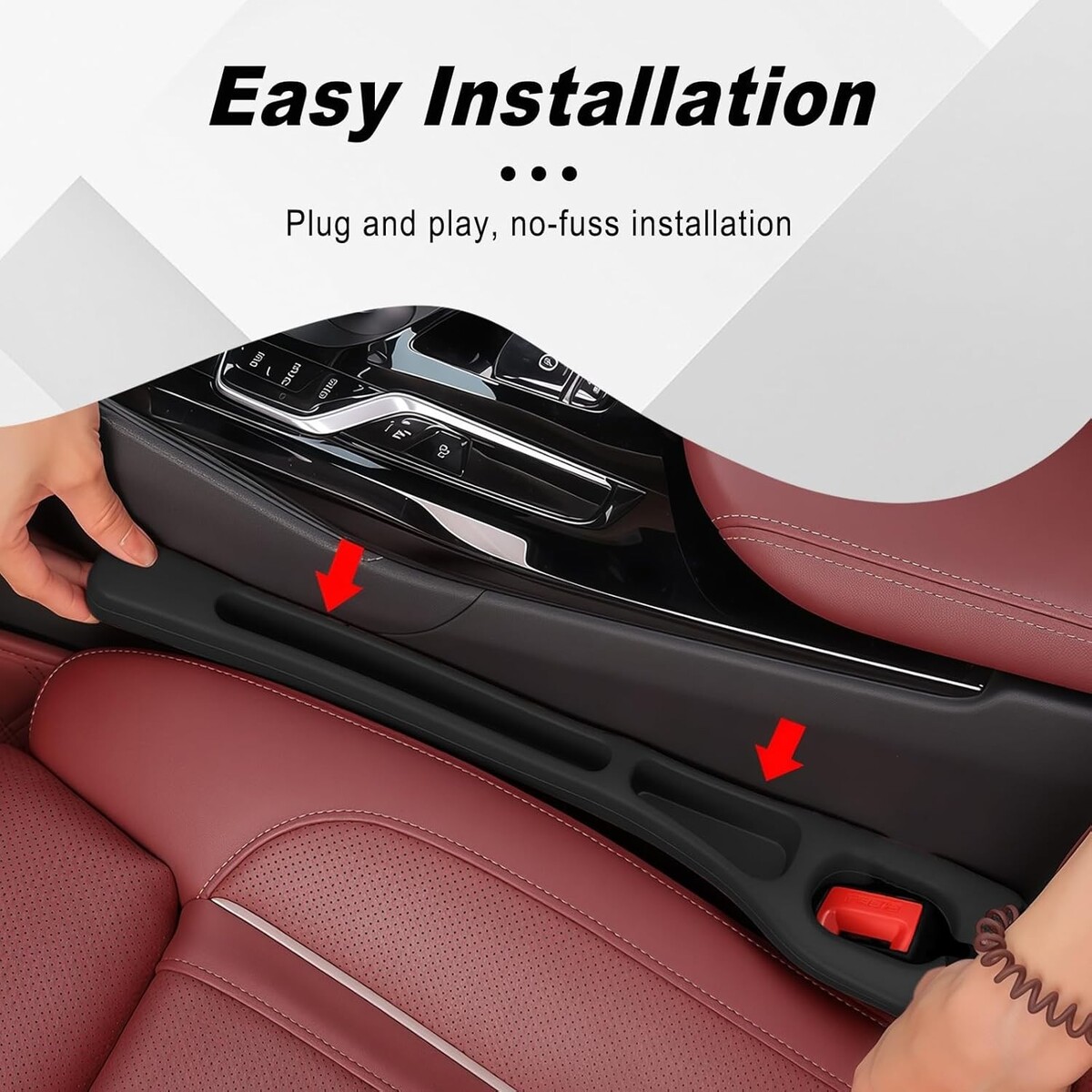 Slide this gap filler into the gap between your car seat and the center console; no tools needed.