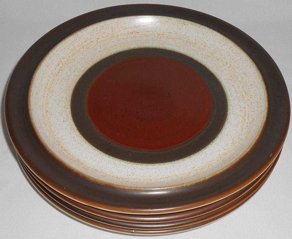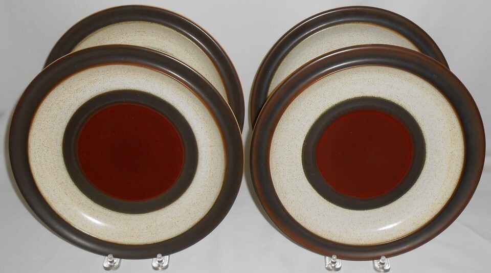 This is a Set of (4) 10" Stoneware Dinner Plates from Denby in the Potters Wheel Rust Red Pattern and Made in England. They are all in good pre-owned condition with no chips or cracks.