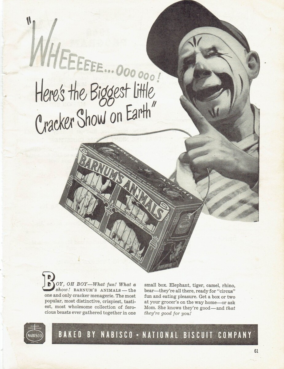 1948 Barnum's Animal Crackers Print Ad Snack Circus Nabisco 8.5" x 11" B & W