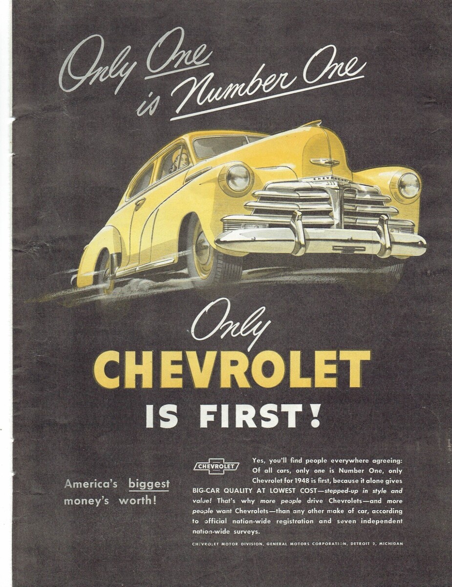 1948 Chevrolet Print Ad Car Automobile 8.5" x 11"